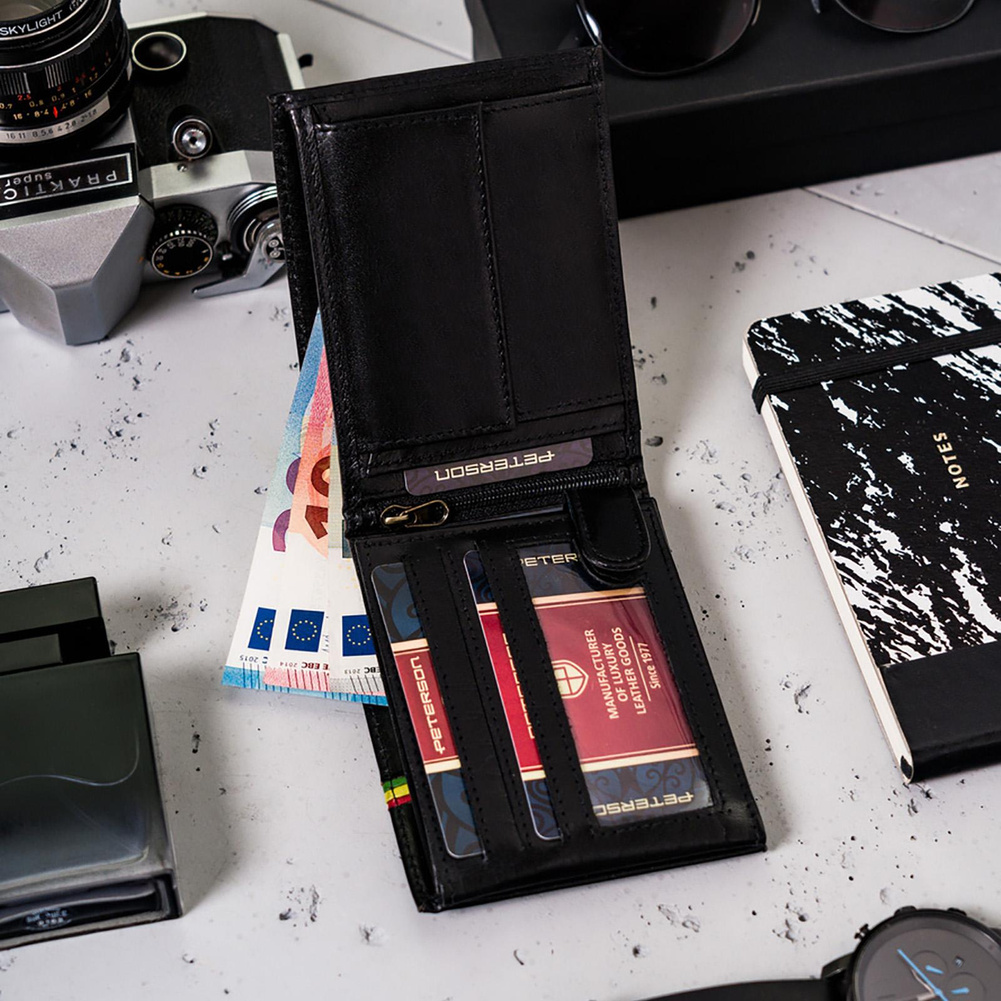 Poziomy portfel męski z kolorową lamówką — Peterson