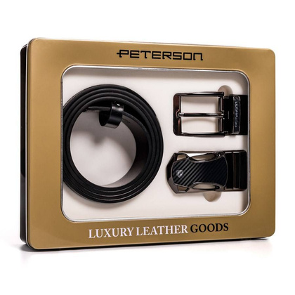 Zestaw prezentowy: skórzany pasek męski z wymienną klamrą na bolec — Peterson