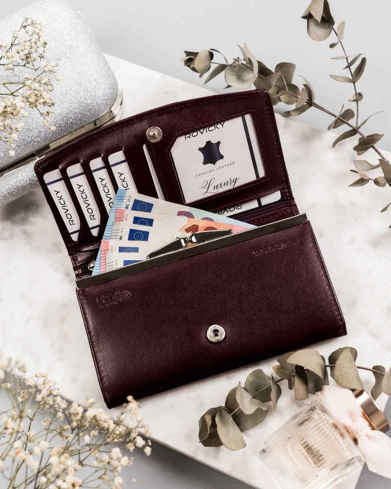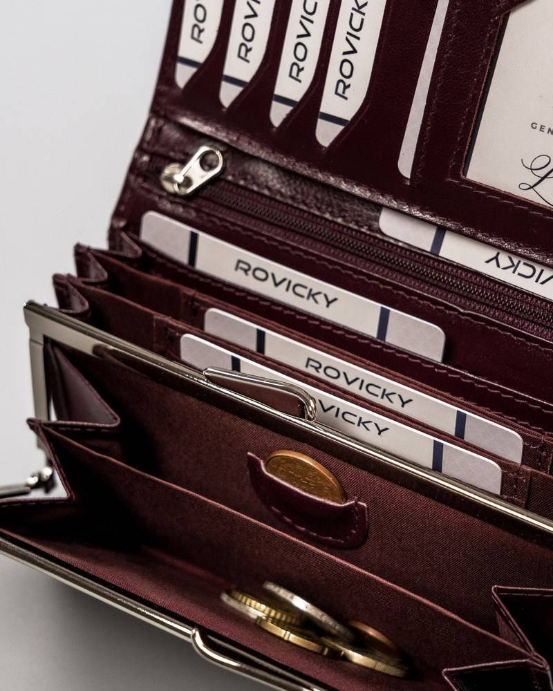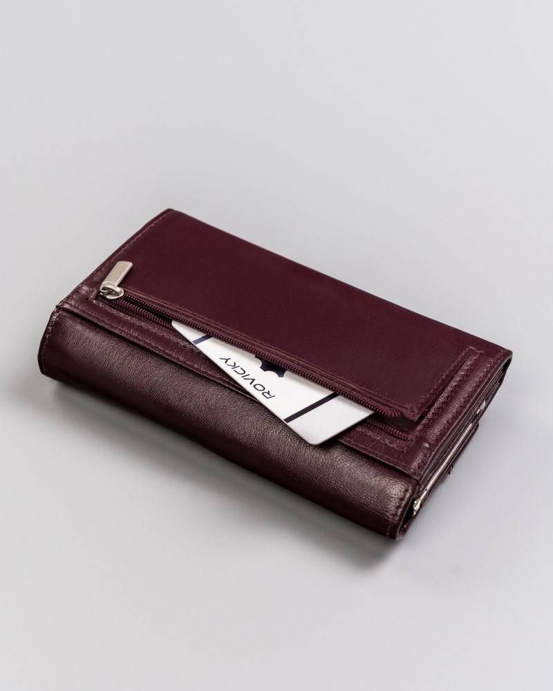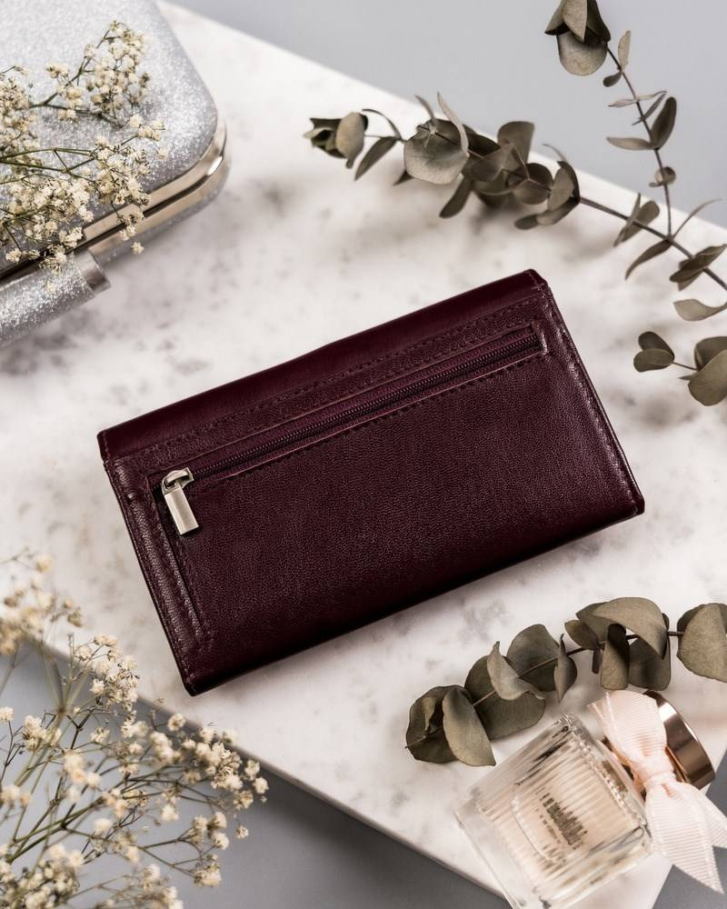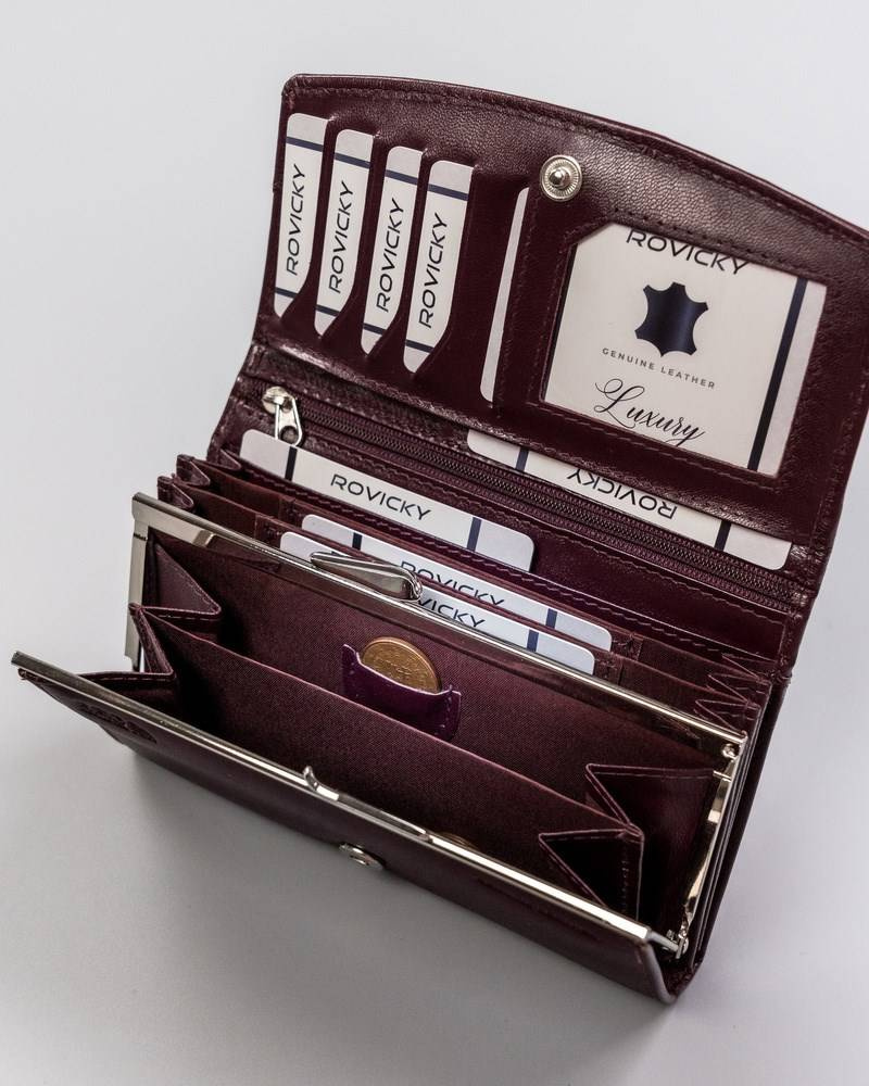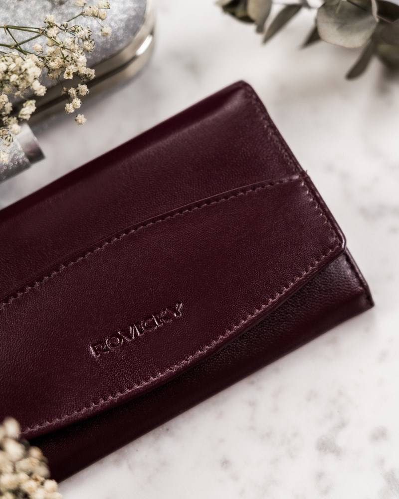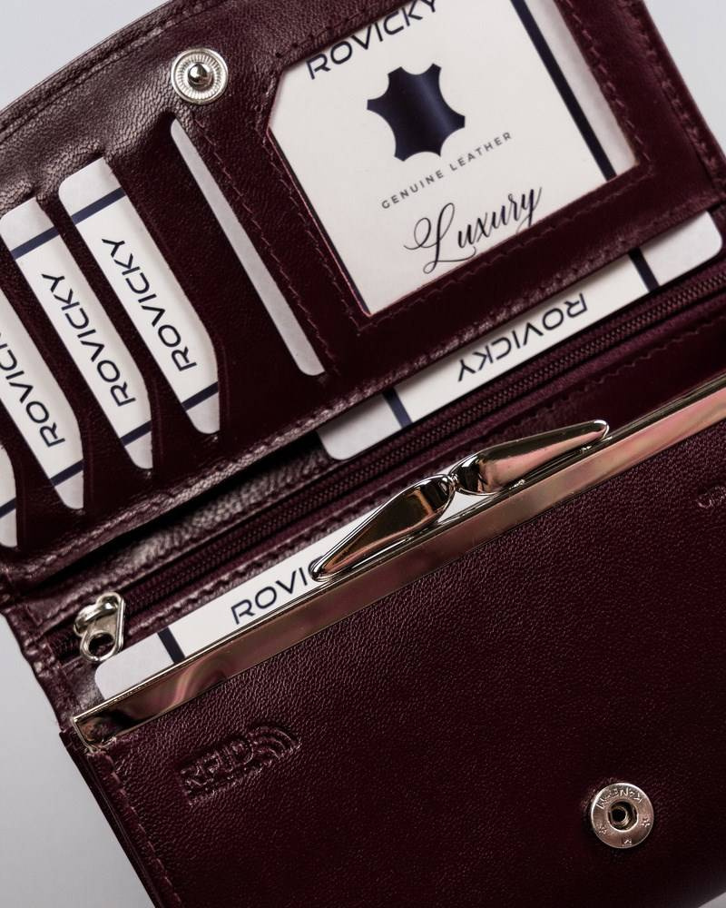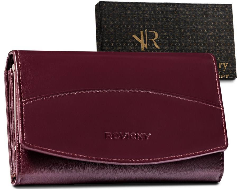 Skórzany portfel damski z tłoczoną klapą — Rovicky