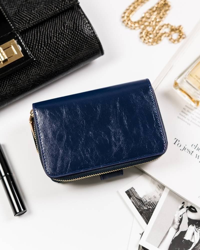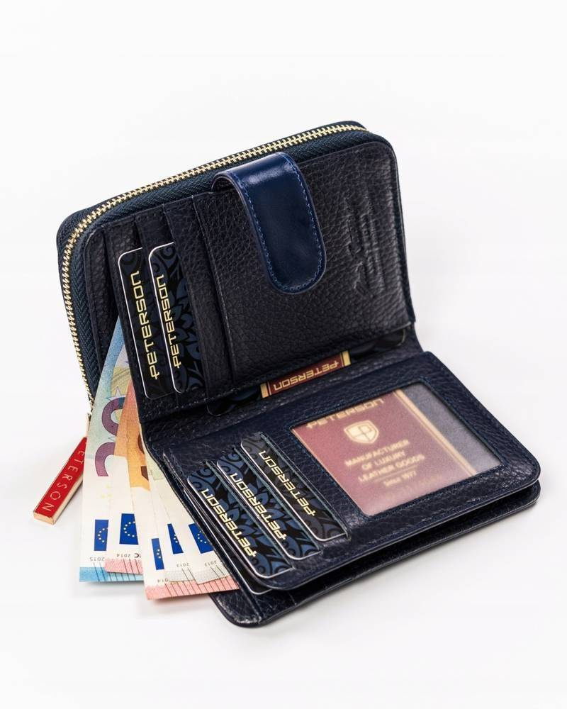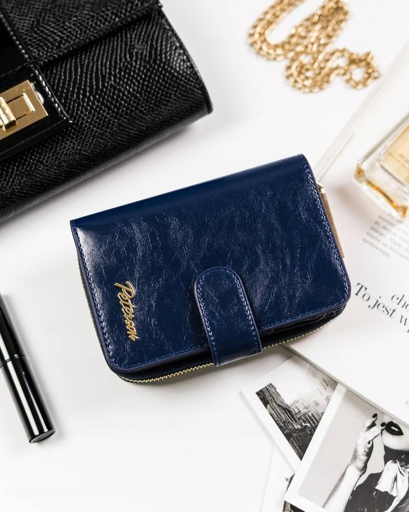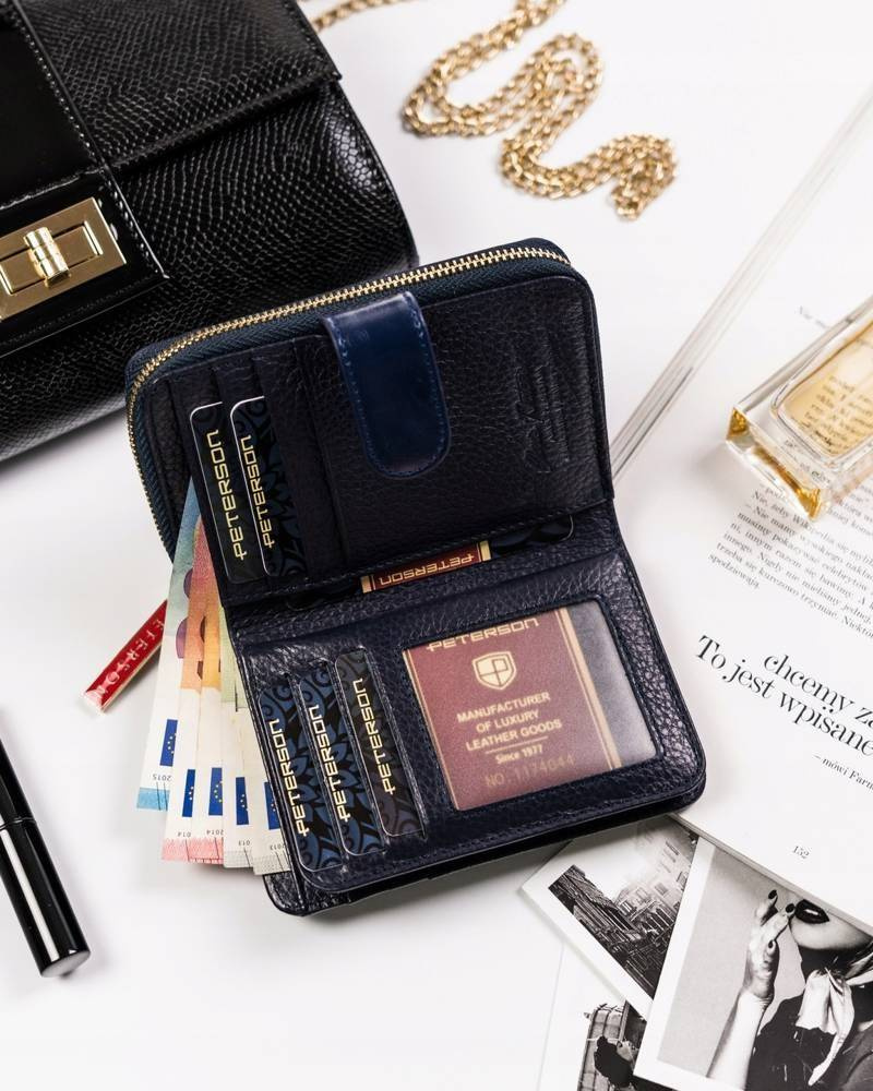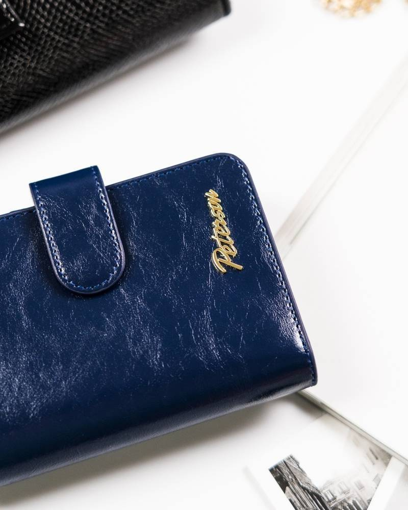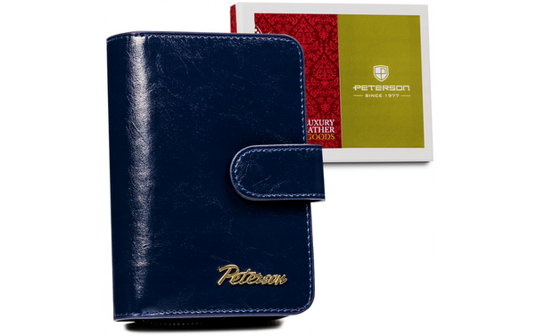 Skórzany portfel damski na zatrzask Peterson Niebieski