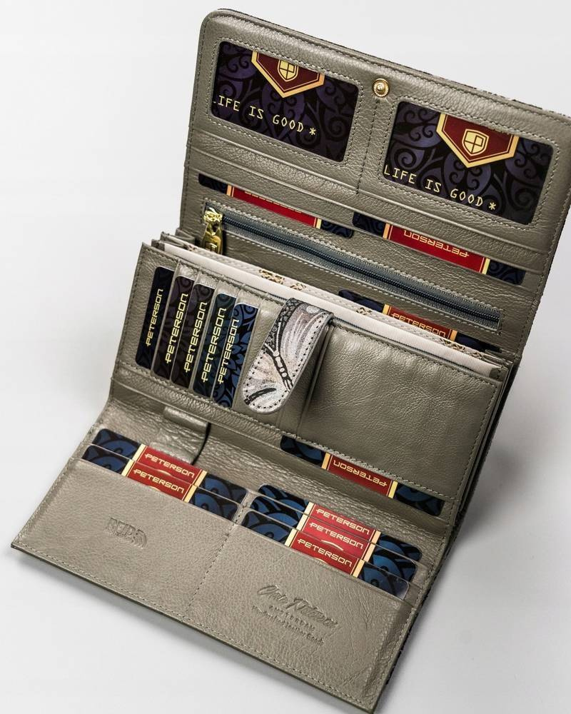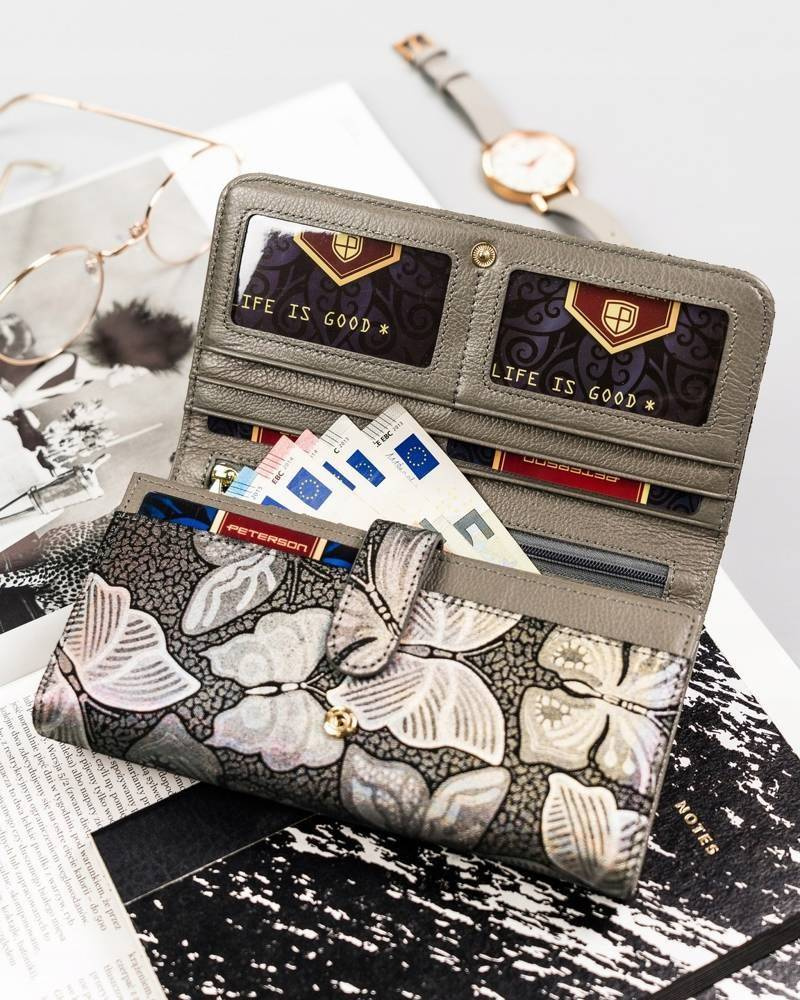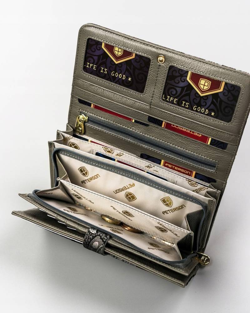 Duży, skórzany portfel damski w orientacji poziomej Peterson