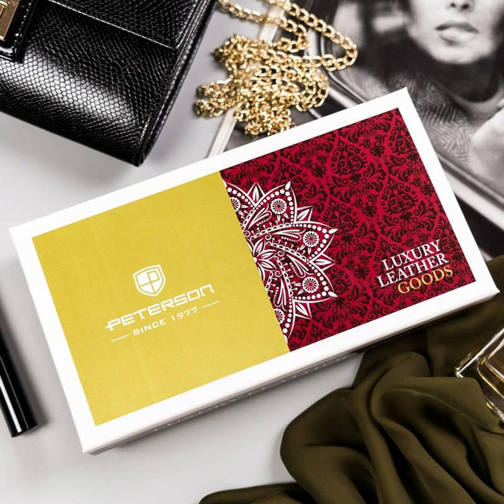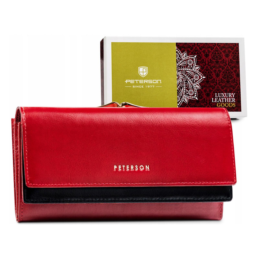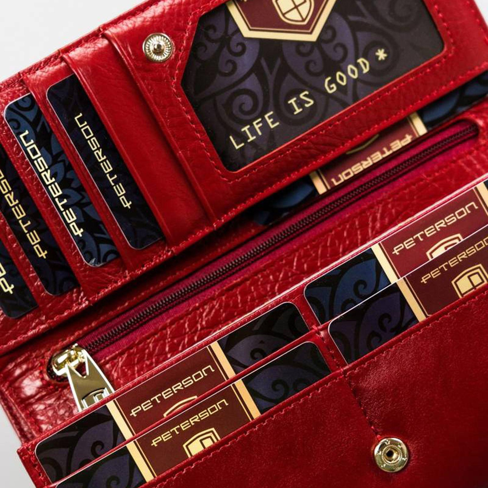 Duży, skórzany portfel damski na zatrzask i bigiel — Peterson