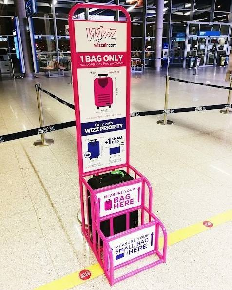 - Maksymalne wymiary bezpłatnego, małego bagażu podręcznego w liniach Wizzair - 40 x 30 x 20 cm, o wadze do 10 kg (musi zmieścić się pod fotelem poprzedzającym)