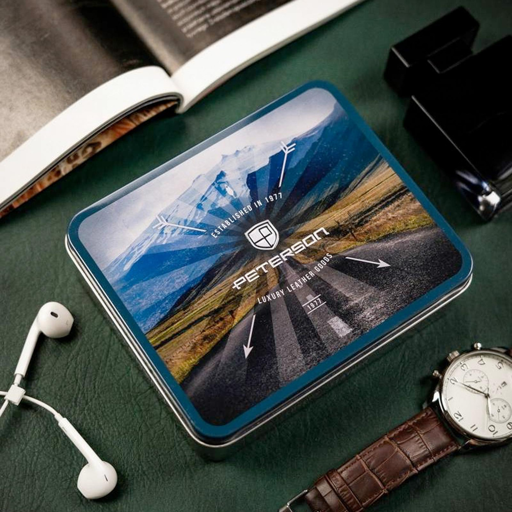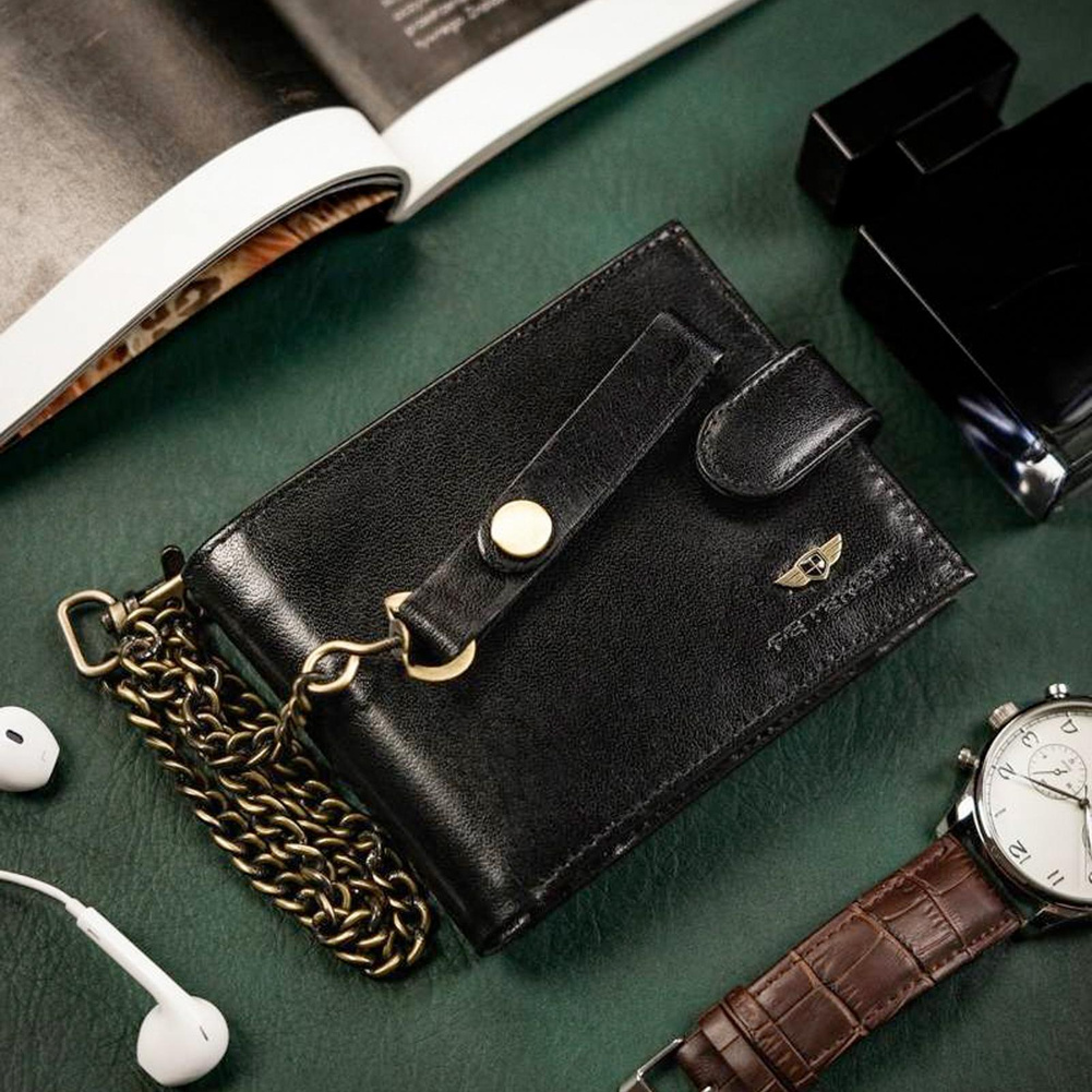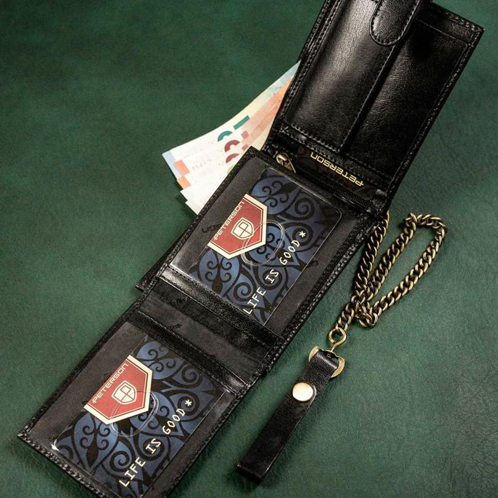 Poziomy portfel męski ze skóry naturalnej z łańcuchem — Peterson
