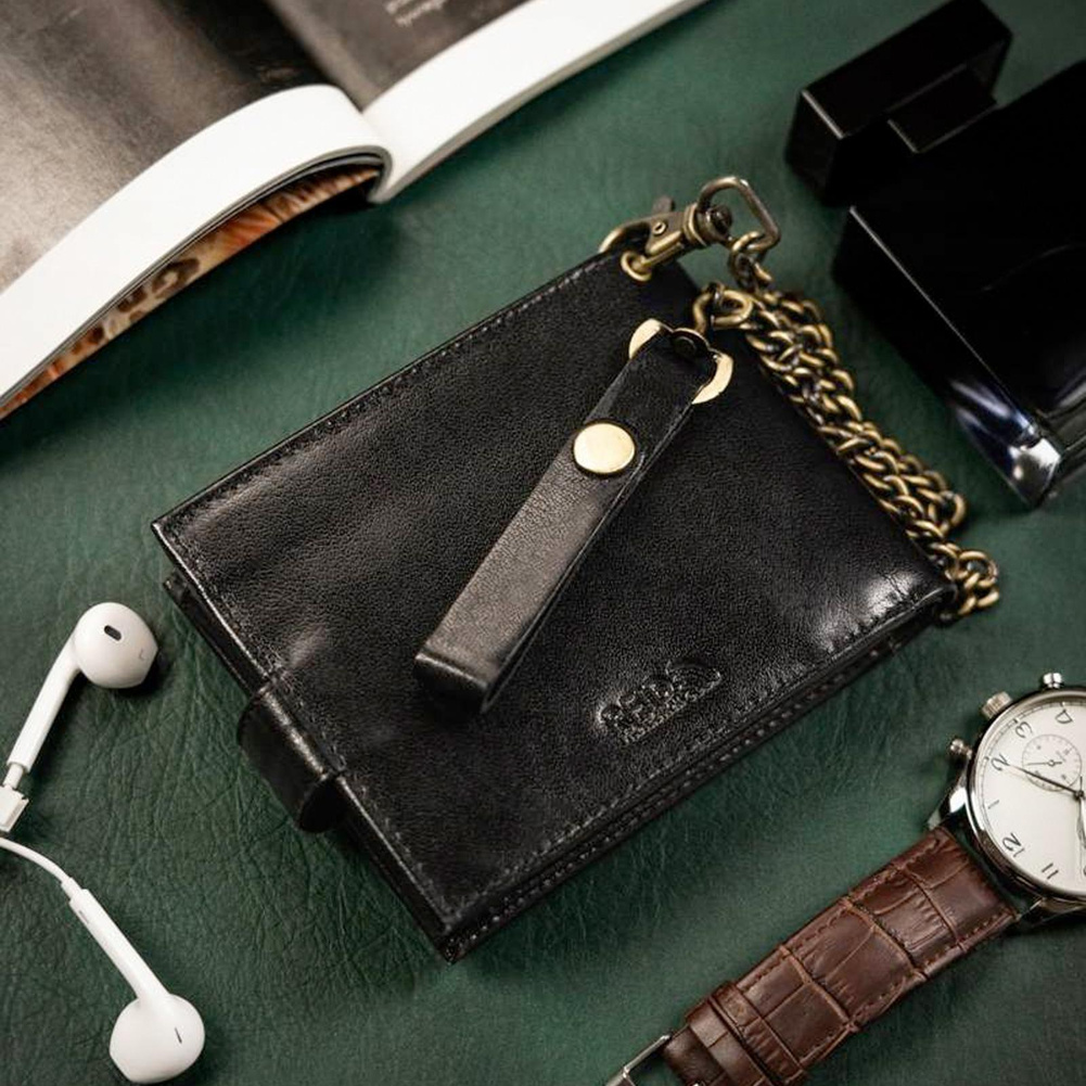 Poziomy portfel męski ze skóry naturalnej z łańcuchem