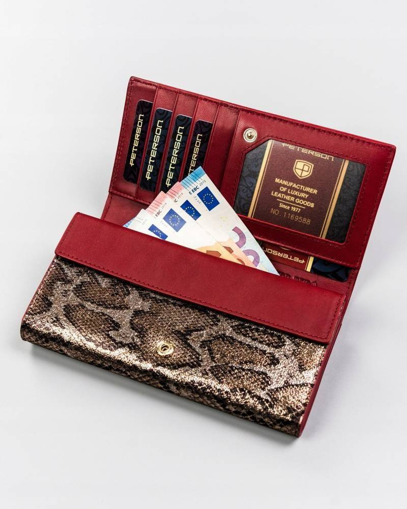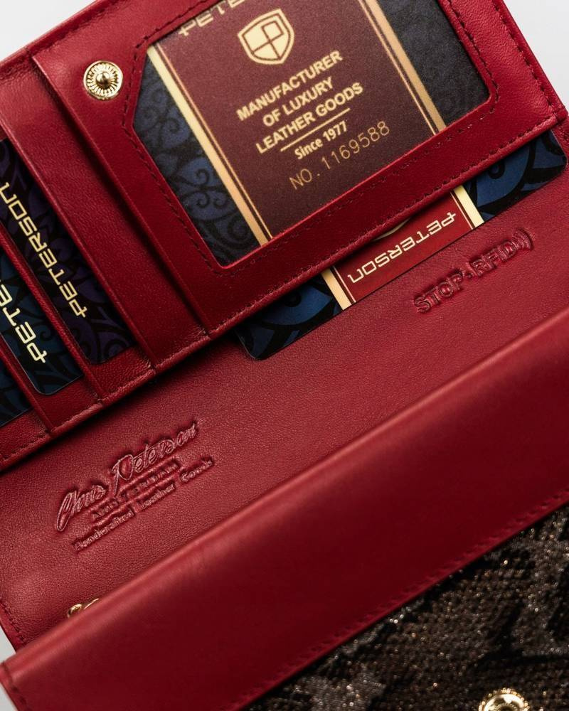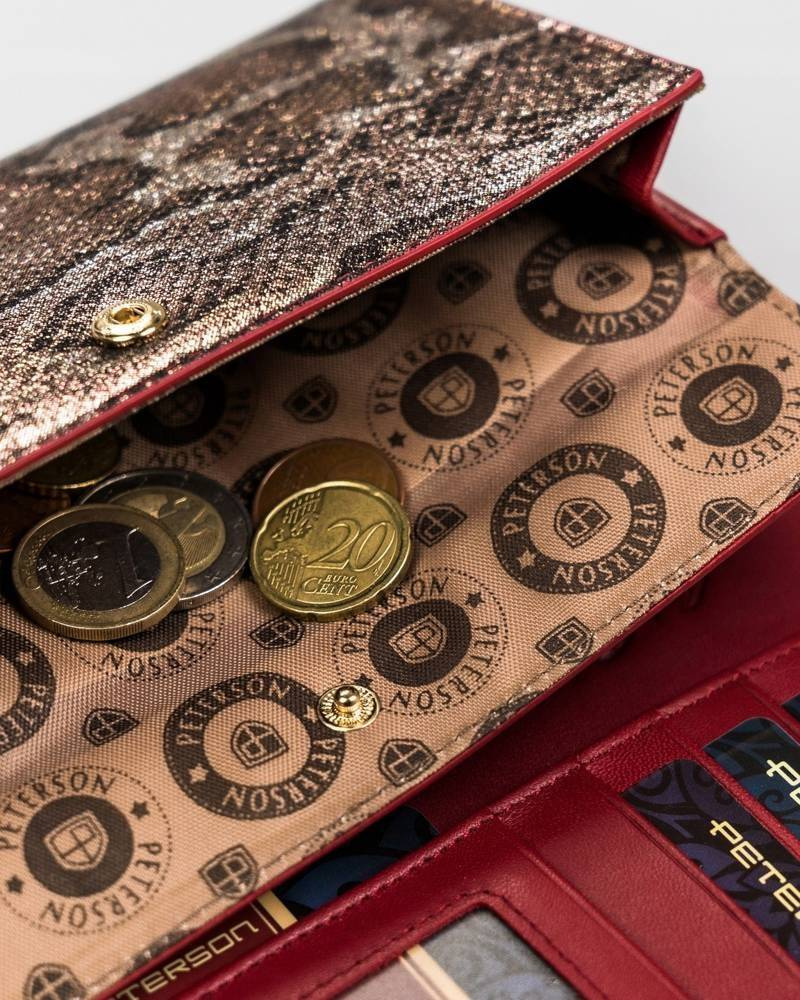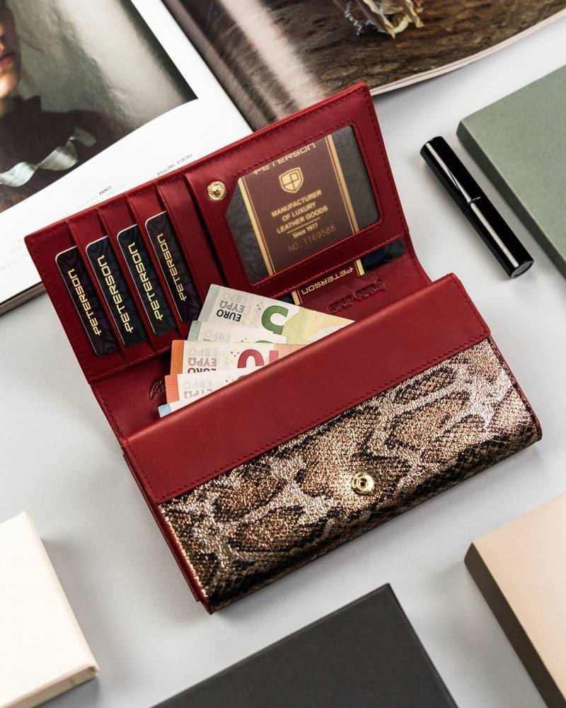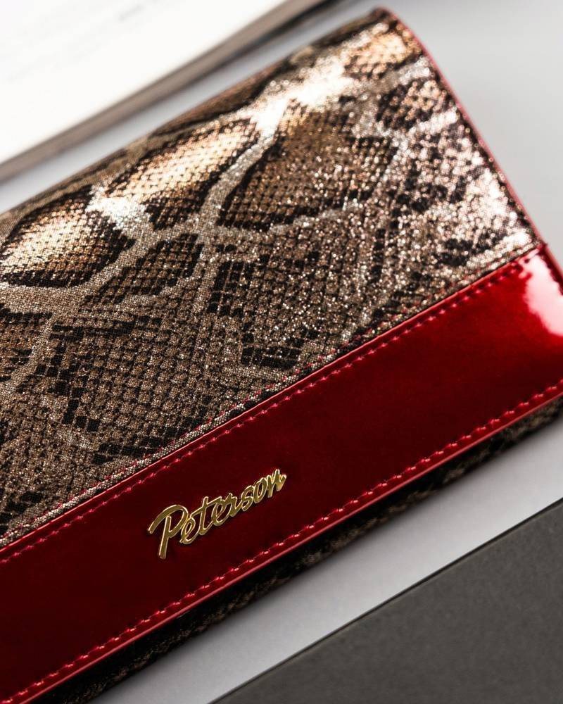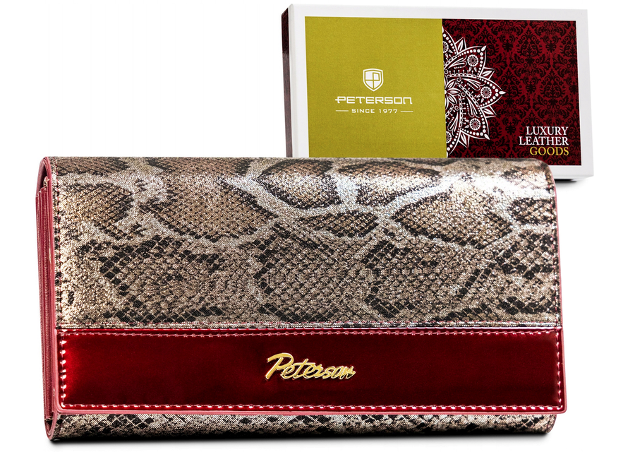Lakierowany portfel damski ze wzorem wężowej skóry — Peterson
