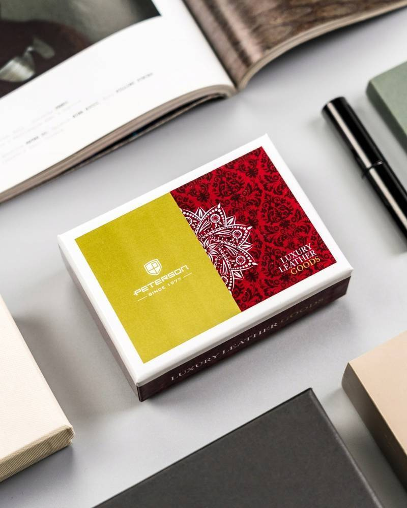 - 2 schowki na duże dokumenty. Jeden ze schowków mieści się po zewnętrznej stronie portfela, z tyłu;