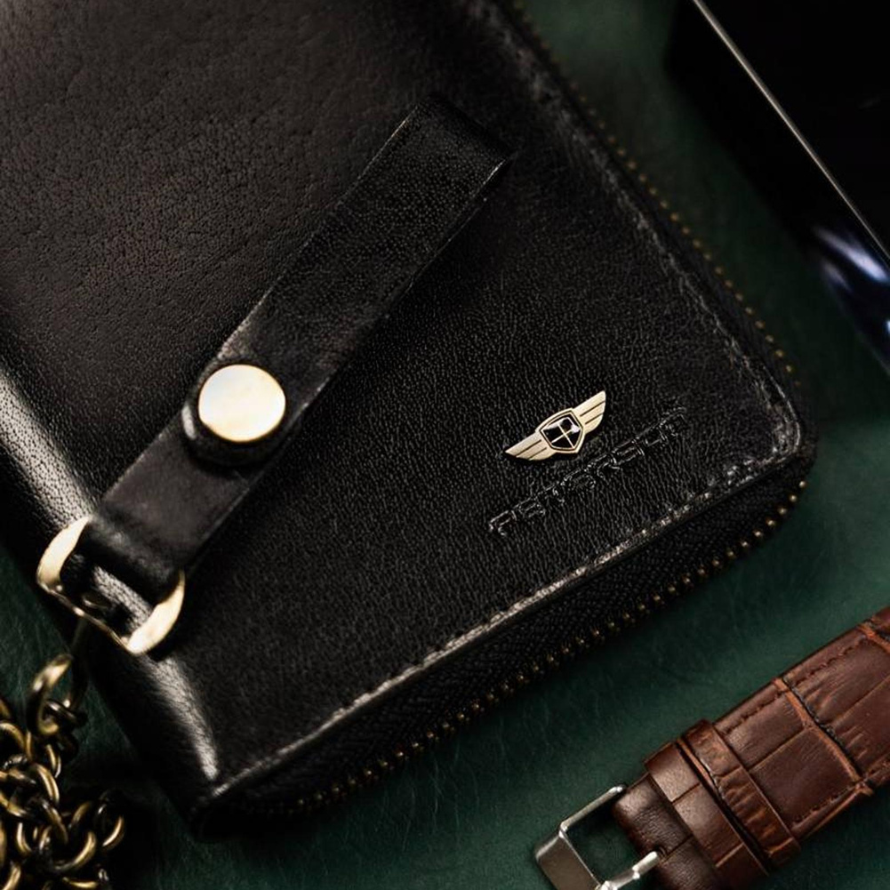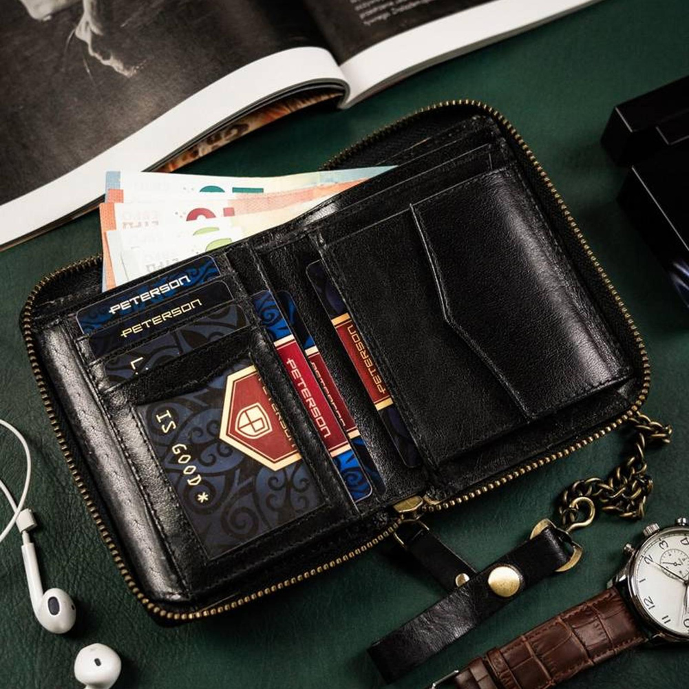 Duży, skórzany portfel męski na zamek — Peterson