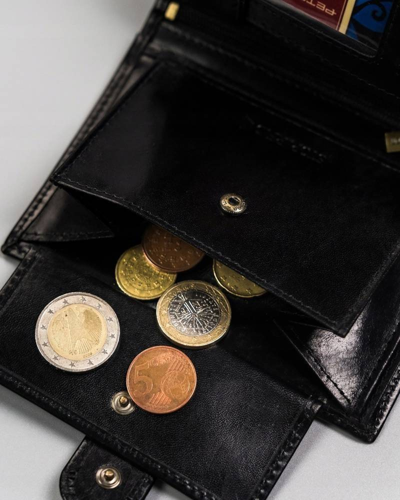 - banknoty schowasz do 2 otwartych przegródek wyszytych po całej szerokości portfela.
