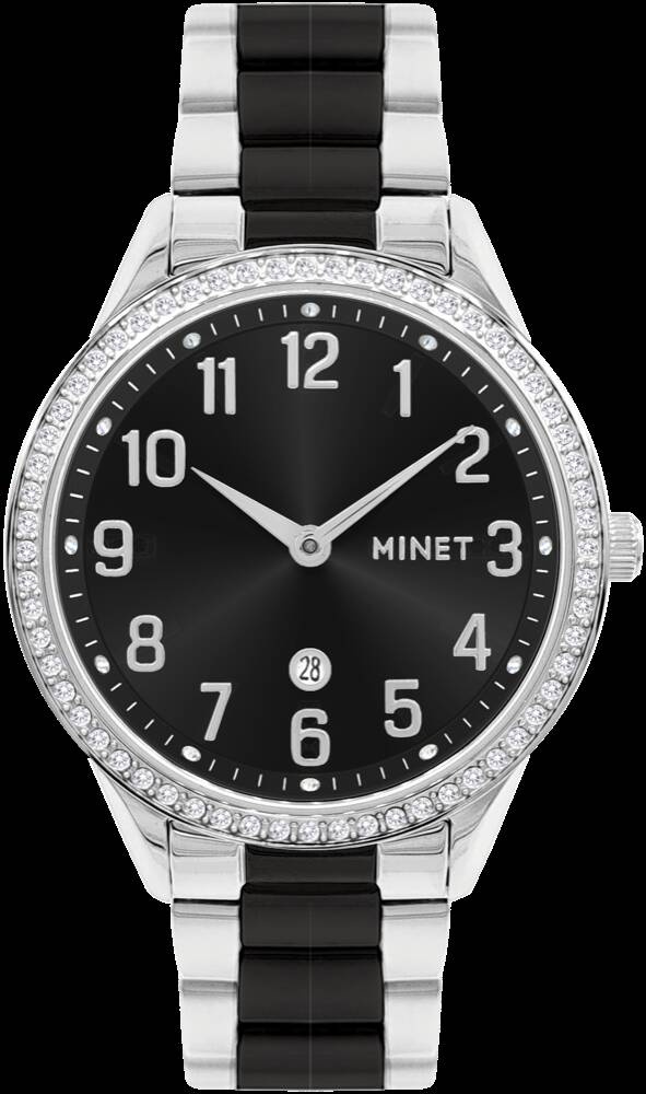 MINET Srebrno-czarny damski zegarek AVENUE z cyframi