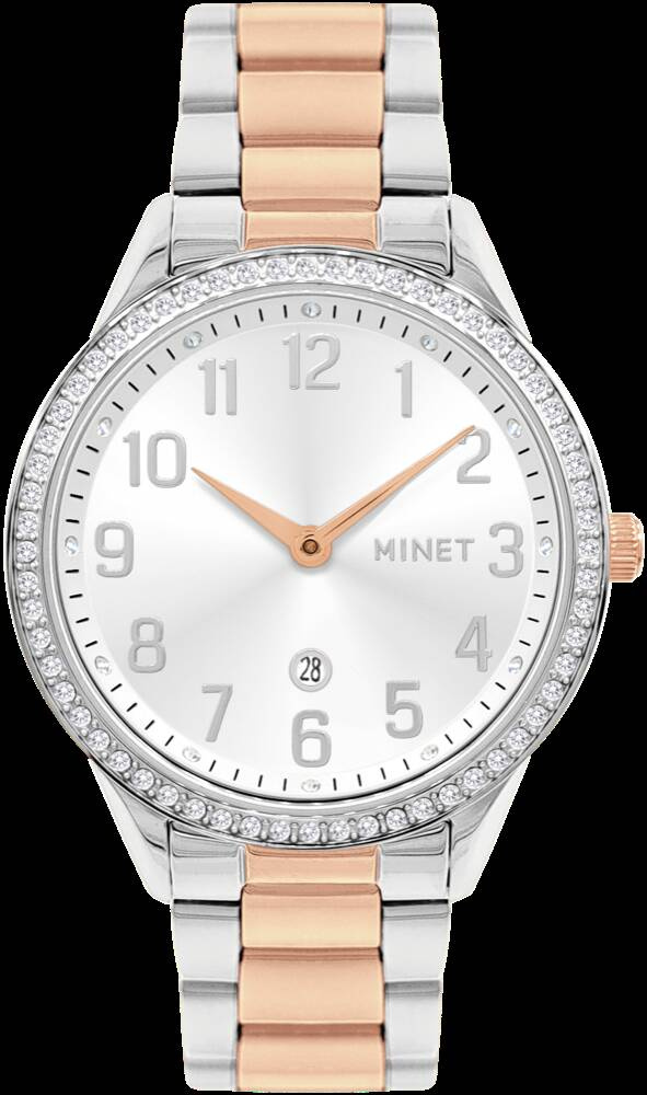 Elegancki i wysokiej jakości zegarek z kolekcji AVENUE czeskiej marki MINET wykonany jest ze stali szlachetnej i wysadzany 72 czeskimi kryształkami.