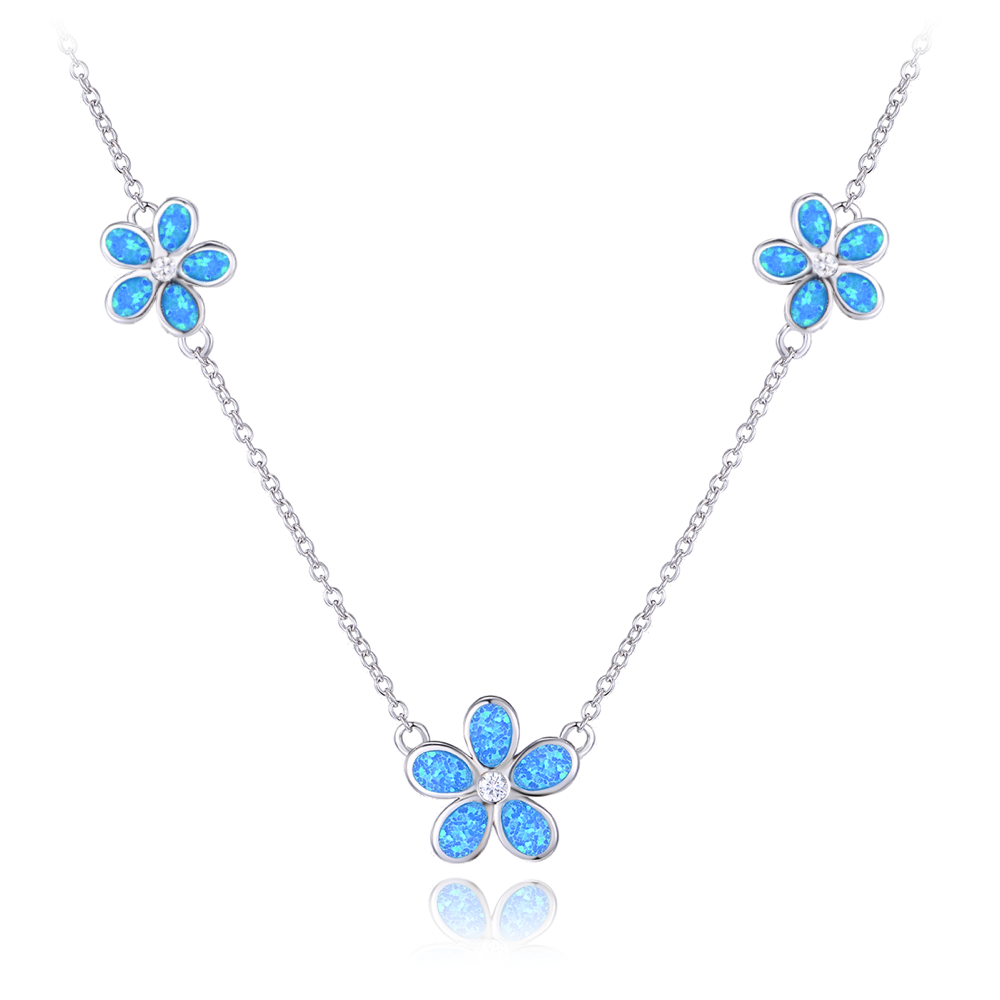 MINET Naszyjnik srebrny KWIATY z granatowymi opalami