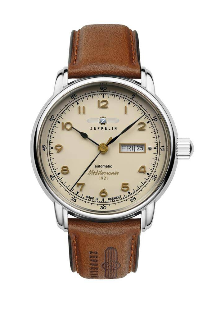 Miyota 8205, tarcza beżowa-szampańska 40 mm, szkło mineralne K1, dekiel ze szkłem mineralnym, wysokość 12 mm, WR 5 ATM, pasek skórzany 20 mm
