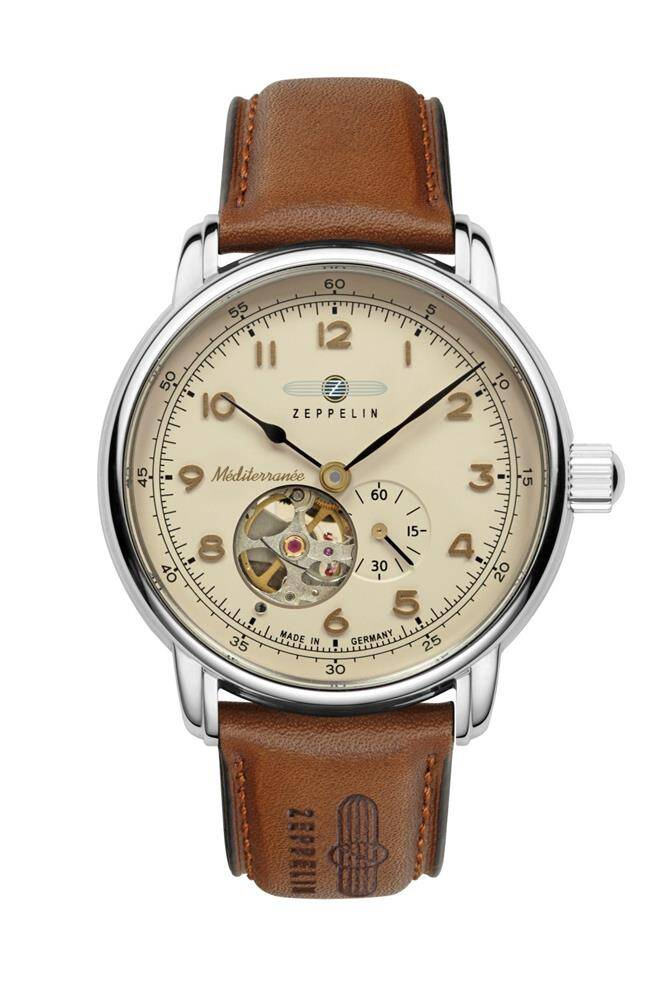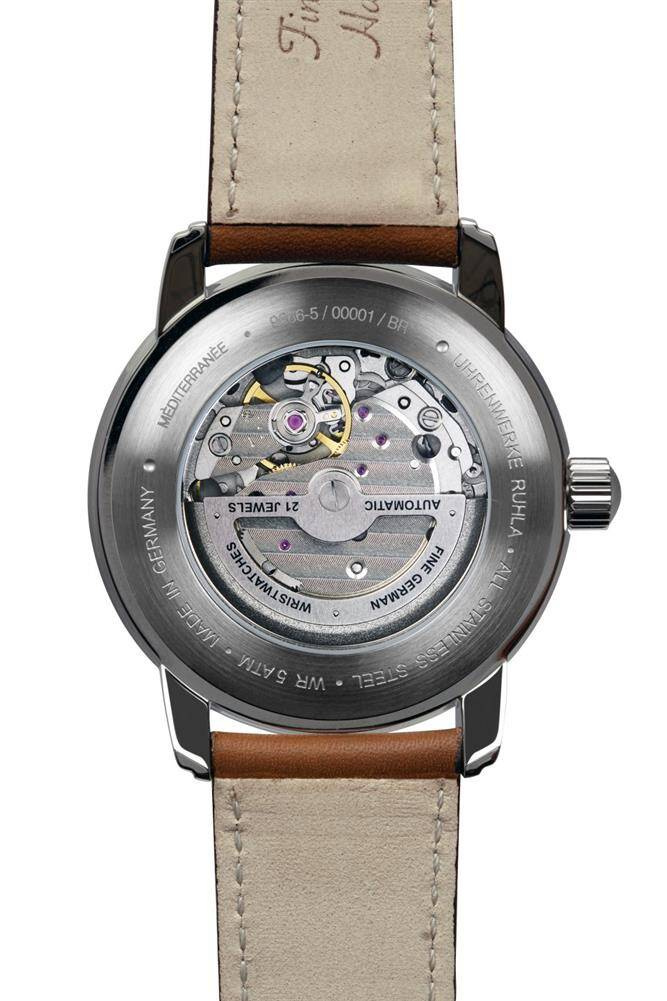 Miyota 82S5, tarcza beżowa-szampańska 40 mm, szkło mineralne K1, dekiel ze szkłem mineralnym, wysokość 12 mm, WR 5 ATM, pasek skórzany 20 mm