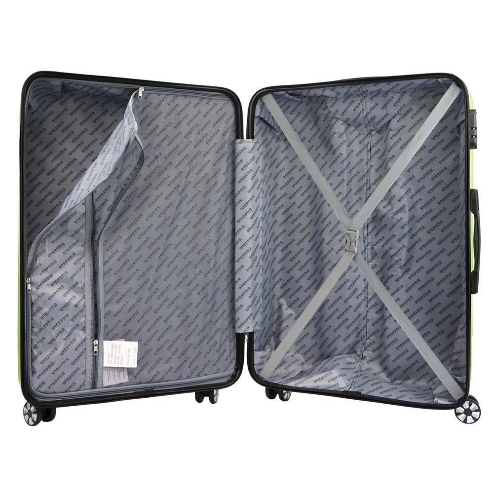 Zestaw składa się z trzech walizek w rozmiarach 20, 24 i 28 cali oraz kuferka w rozmiarze 14 cali.
