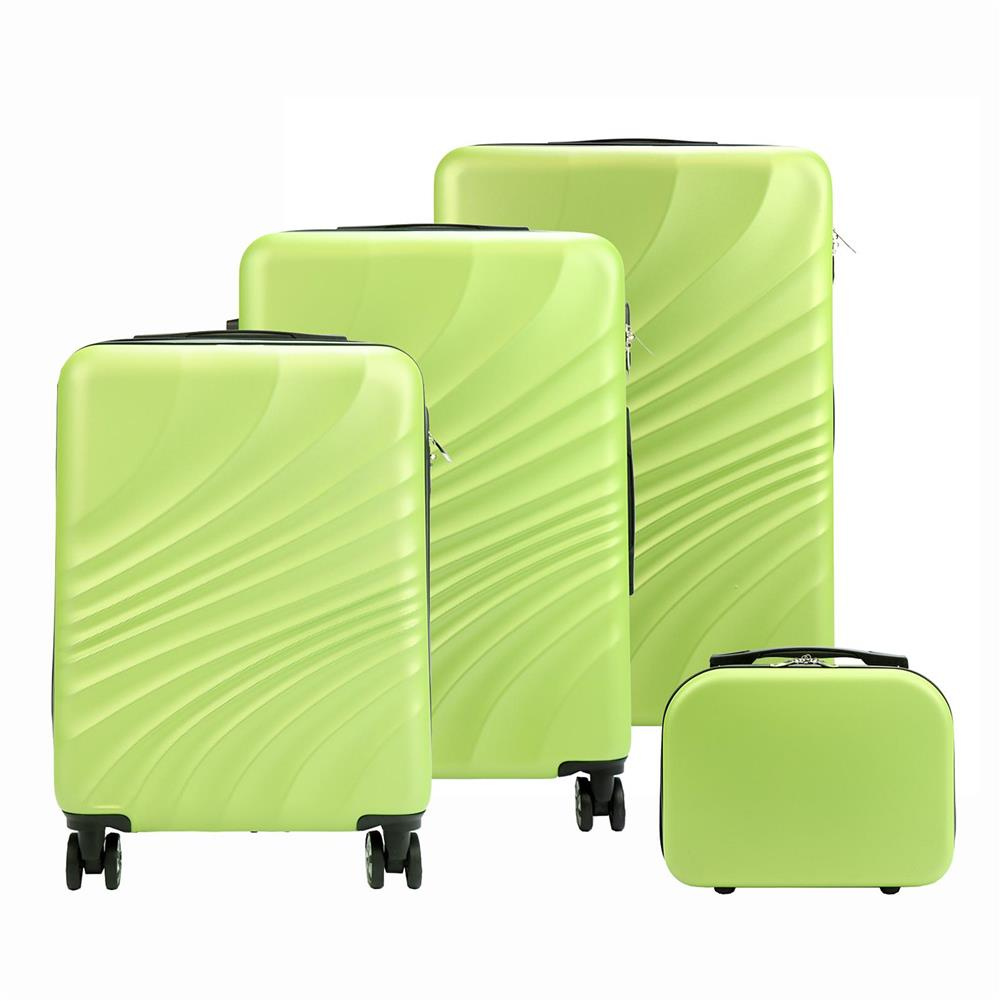 Zestaw składa się z trzech walizek w rozmiarach 20, 24 i 28 cali oraz kuferka w rozmiarze 14 cali.