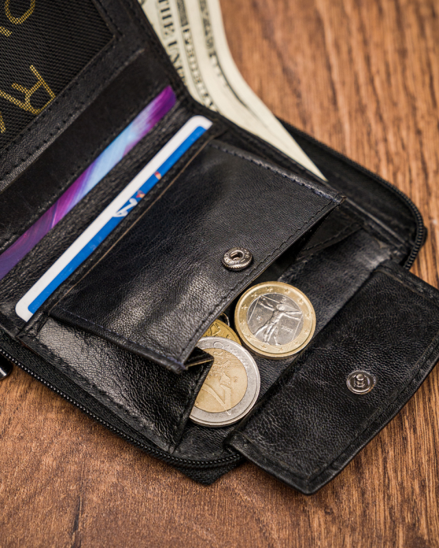 •  Monety schowasz do 1 sporej kieszonki zapinanej napem