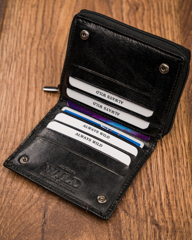 Portfel zapakowany jest w firmowe pudełko Always Wild®. Doskonale nadaje się na prezent. Jest to duża zaleta jeśli ma to być podarunek dla bliskiej osoby. Nie musisz tracić czasu i pieniędzy na szukanie opakowania prezentowego. Wystarczy ozdobna wstążka/kokarda i możesz cieszyć się radością obdarowanej osoby.