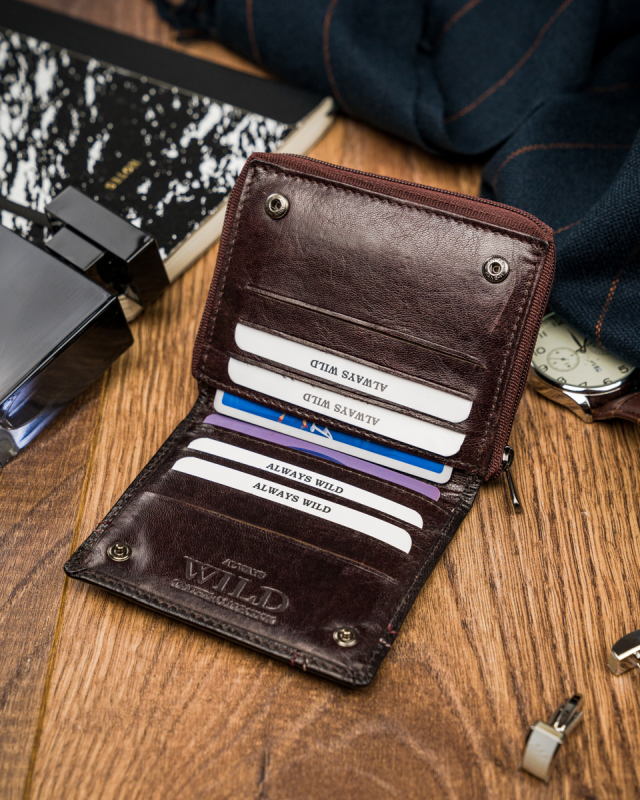 Portfel zapakowany jest w firmowe pudełko Always Wild®. Doskonale nadaje się na prezent. Jest to duża zaleta jeśli ma to być podarunek dla bliskiej osoby. Nie musisz tracić czasu i pieniędzy na szukanie opakowania prezentowego. Wystarczy ozdobna wstążka/kokarda i możesz cieszyć się radością obdarowanej osoby.