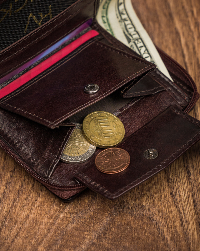 - Monety schowasz do 1 sporej kieszonki zapinanej napem