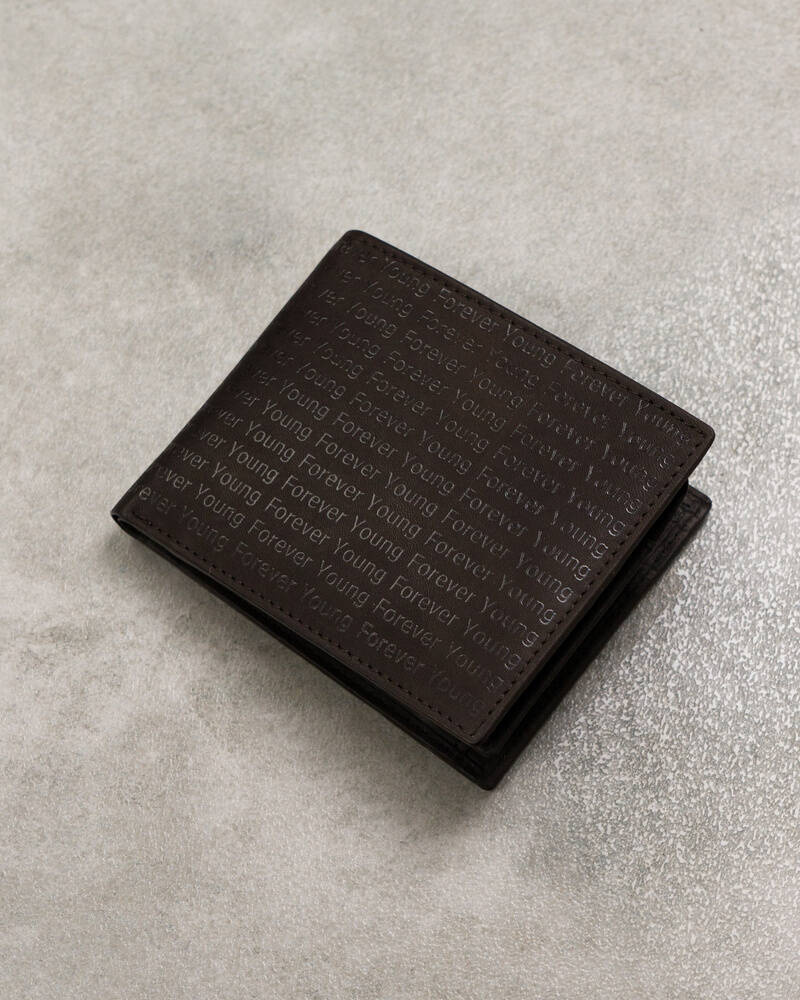 • Stylowy portfel o oryginalnym designie | Panel portfela zdobi monogram z nazwą firmy. Model w orientacji poziomej bez zapięcia zewnętrznego.