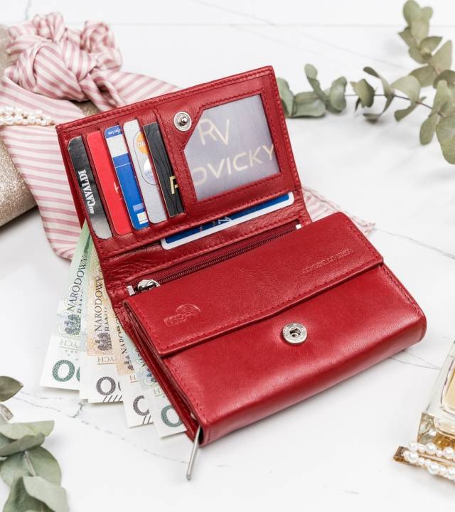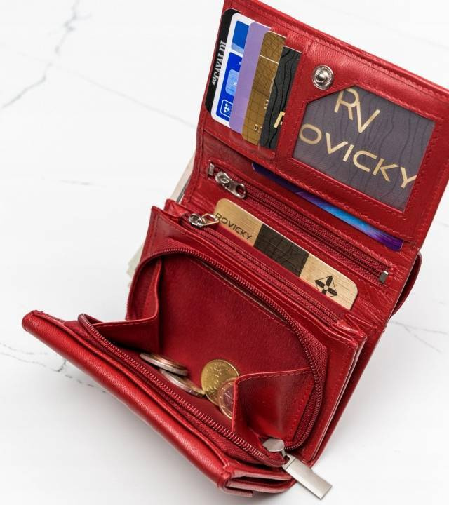 - 1 dodatkowy schowek w postaci mini kieszonki w centralnej części portfela zamykany na suwak