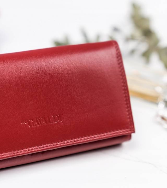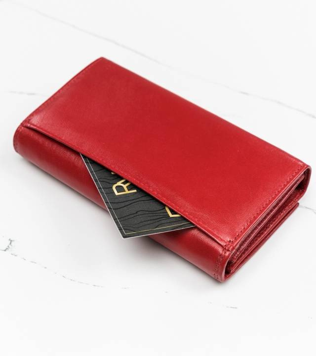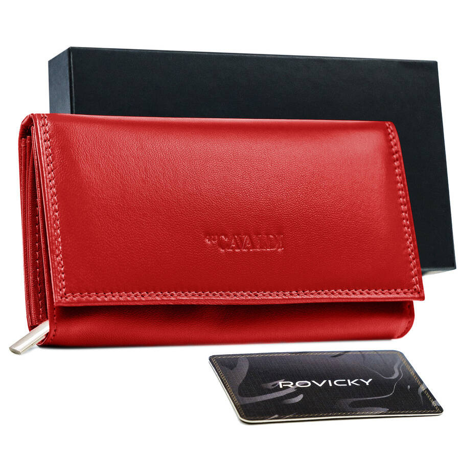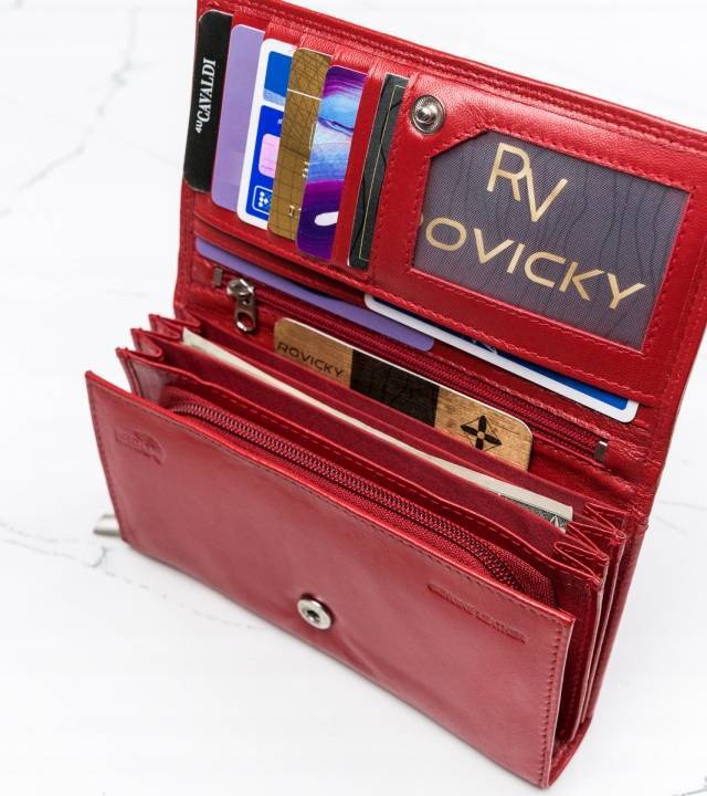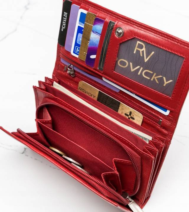 - 4 kieszonki na dokumenty w większym formacie, jak dowód rejestracyjny w okładce. Jedna z tych kieszonek mieści się po zewnętrznej części, z tyłu portfela i jest otwarta. Zalecamy jednak, by ważne dokumenty przechowywać wewnątrz, zamykanego napą portfela.