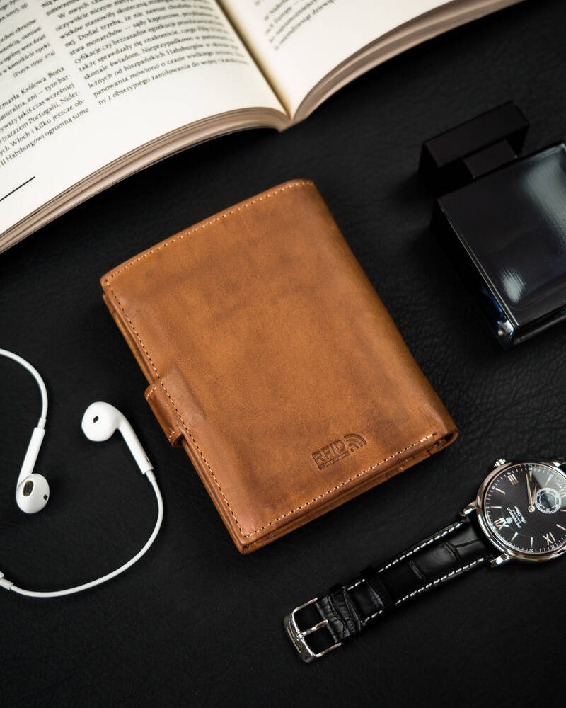Męski portfel w pionowej orientacji, zapinany na zatrzask. Idealny dla Mężczyzn w każdym wieku!