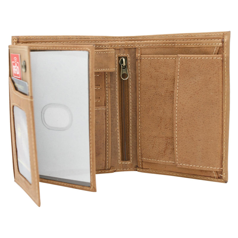 Portfel wykonany jest ze starannie wyselekcjonowanej skóry naturalnej nubukowej, garbowanej niezmienną od dziesięcioleci techniką.