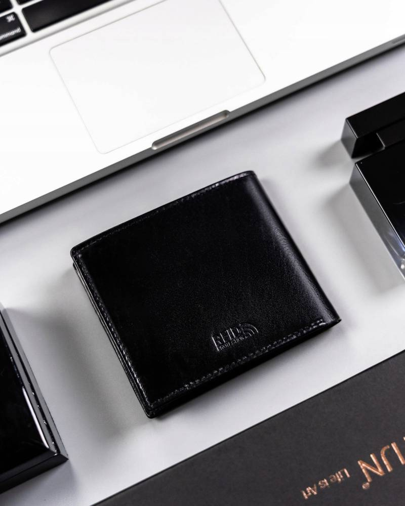 - Elegancki model | Portfel o klasycznej stylistyce. Model w orientacji poziomej bez zapięcia zewnętrznego;
