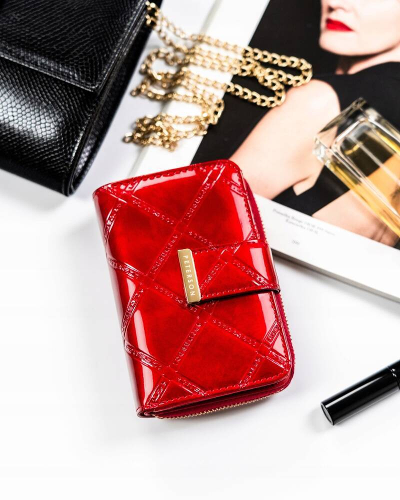 Portfel damski ze skory naturalnej zamykany na zatrzask i suwak