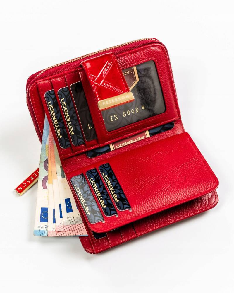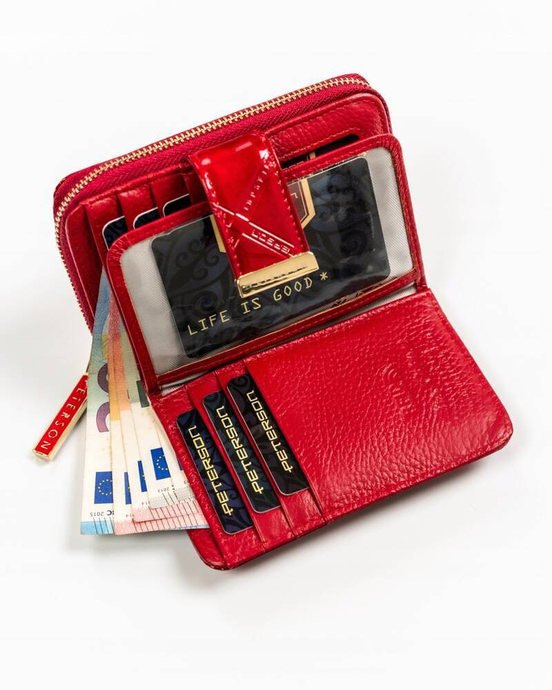 - banknoty zmieścisz w otwartej przegródki wewnątrz portfela.