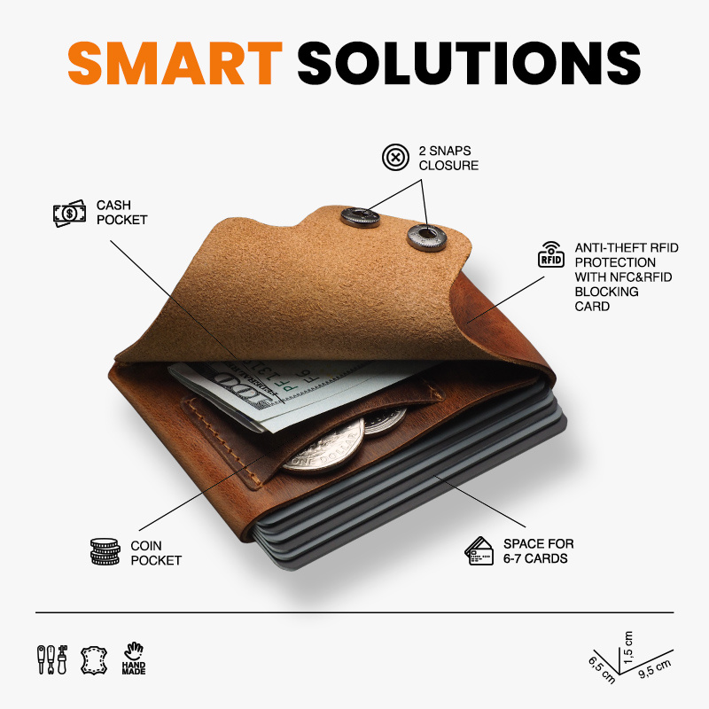 Dwie kieszonki: na banknoty i bilon pomogą Ci uporządkować zawartość.