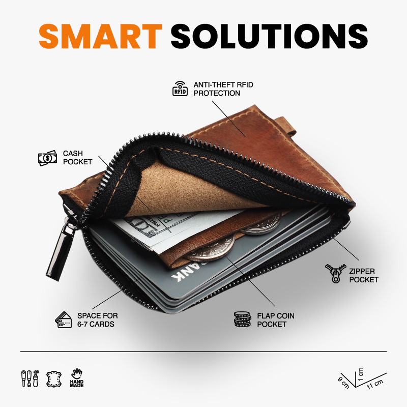 Łatwy dostęp do ośmiu kart płatniczych, bilonu oraz banknotów.