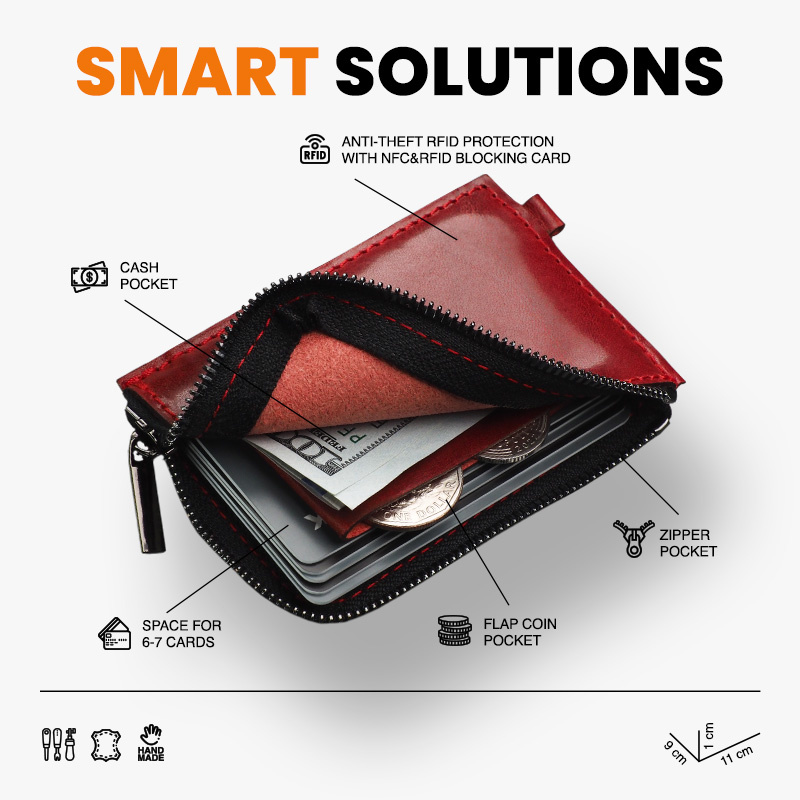 Daje łatwy dostęp do ośmiu kart płatniczych, bilonu oraz banknotów.