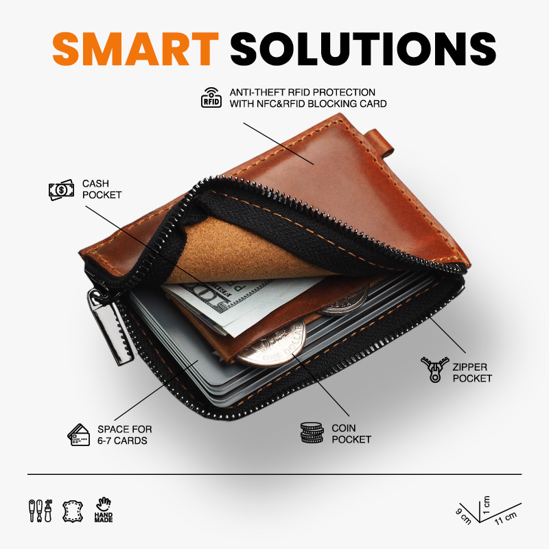 Daje łatwy dostęp do ośmiu kart płatniczych, bilonu oraz banknotów.