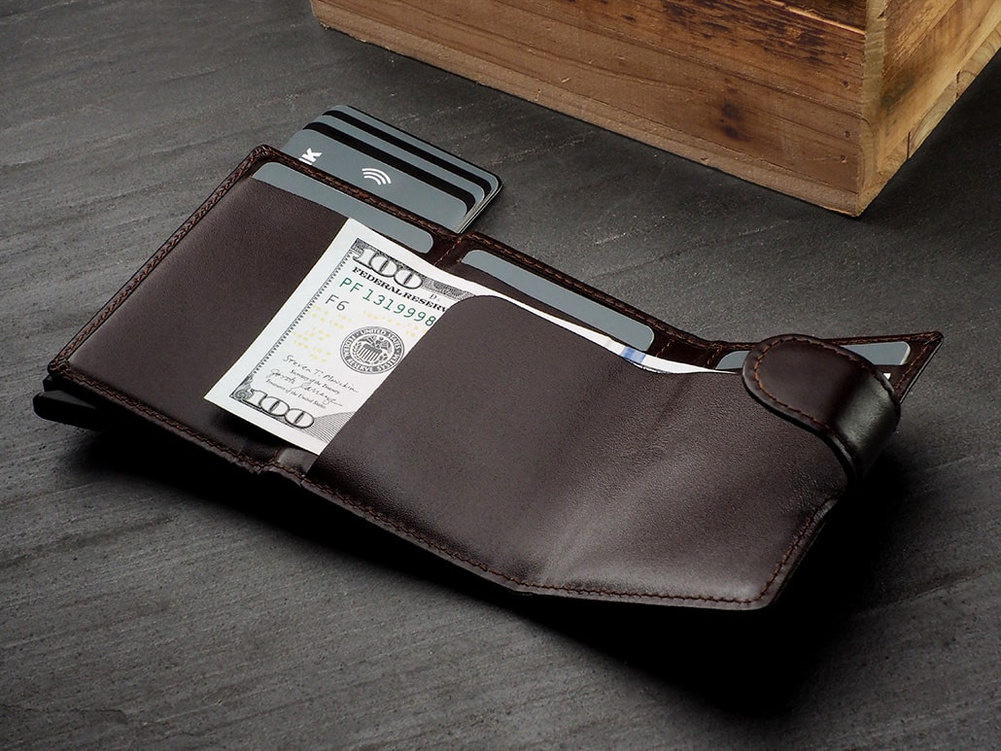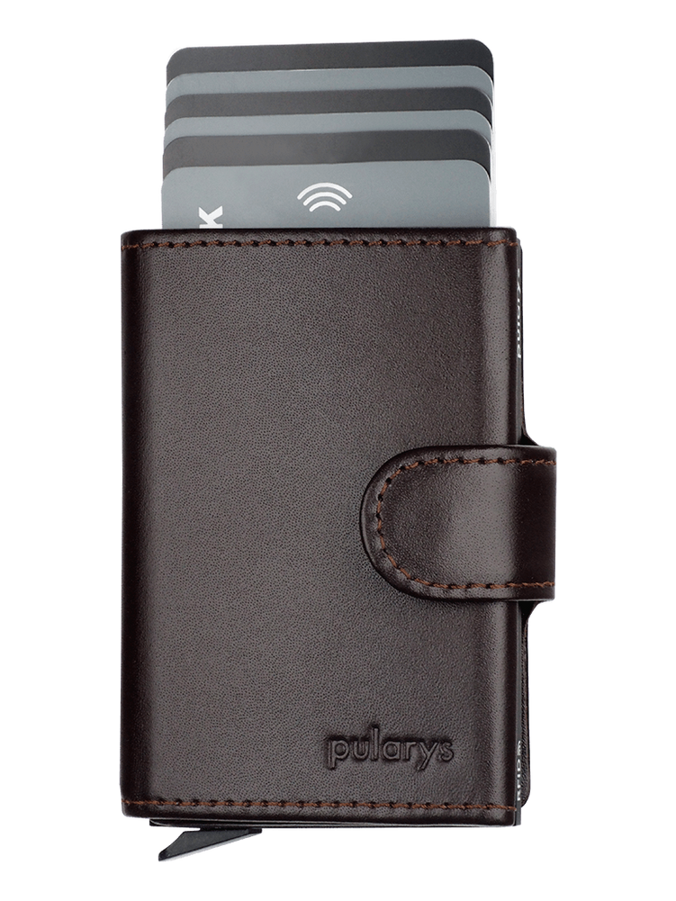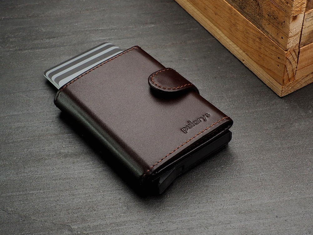 Rozmiar: 7,5 x 9,5 x 2,5 cm Materiał: Skóra Italia Kieszeń na banknoty Mieści 9 kart Wzór zarejestrowany ® Zabezpieczenie RFID Wykonany z delikatnej, ekskluzywnej skóry Italia. Karty, banknoty - masz je zawsze pod ręką, uporządkowane w kilku łatwo dostępnych kieszonkach. Stopniowo wysuwający karty mechanizm "pul" zapewnia łatwy i szybki dostęp do zawartości portfela. Dzięki technologii blokowania RFID , Twoje dane oraz środki na kartach płatniczych są całkowicie bezpieczne i chronione przed nieautoryzowanym sczytaniem lub kradzieżą. Portfel został zapakowany w elegancie pudełko .