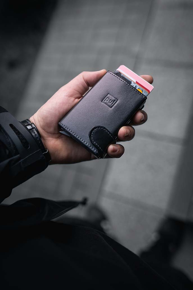 Rozmiar: 7,5 x 9,5 x 2,5 cm Materiał: Skóra Italia Kieszeń na banknoty Mieści 9 kart Wzór zarejestrowany ® Zabezpieczenie RFID Wykonany z delikatnej, ekskluzywnej skóry Italia. Karty, banknoty - masz je zawsze pod ręką, uporządkowane w kilku łatwo dostępnych kieszonkach. Stopniowo wysuwający karty mechanizm "pul" zapewnia łatwy i szybki dostęp do zawartości portfela. Dzięki technologii blokowania RFID , Twoje dane oraz środki na kartach płatniczych są całkowicie bezpieczne i chronione przed nieautoryzowanym sczytaniem lub kradzieżą. Portfel został zapakowany w eleganckie pudełko.