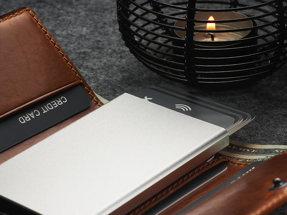 Dzięki zastosowanej technologii blokowania RFID, Twoje dane oraz środki na kartach płatniczych są całkowicie bezpieczne i chronione przed nieautoryzowanym skanowaniem lub kradzieżą.