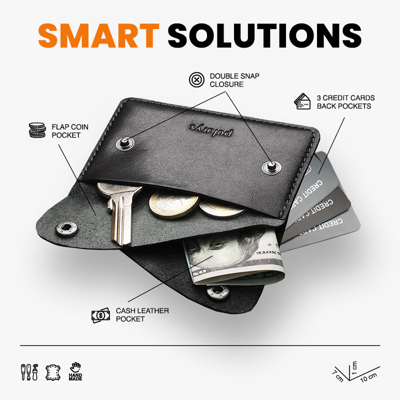 Rozmiar: 10 x 7 cm Materiał: Skóra Italia Zawiera kartę blokującą sygnały NFC i RFID Kieszeń na banknoty Kieszeń na bilon Kieszeń na karty kredytowe Zapięcie na 2 zatrzaski Wykonany z miękkiej skóry Italia, zachwyca pomysłowością i starannym wykończeniem. Szykowne przeszycia i zapięcie na dwa zatrzaski, składają się na skromny, lecz przyciągający uwagę design. Niewielki, kompaktowy i delikatny w dotyku. Pomieści zaskakująco wiele - karty, banknoty i bilon będą zawsze w zasięgu ręki. Zapakowane w pudełko prezentowe .