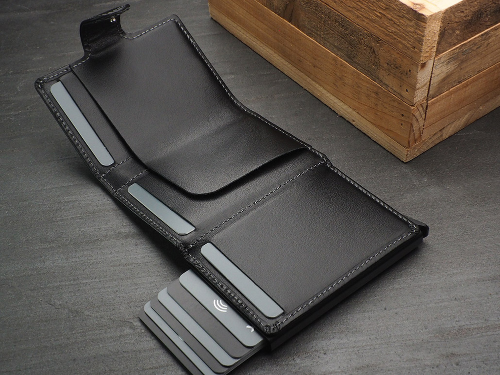 Stopniowo wysuwający karty mechanizm "pul" zapewnia łatwy i szybki dostęp do zawartości portfela.