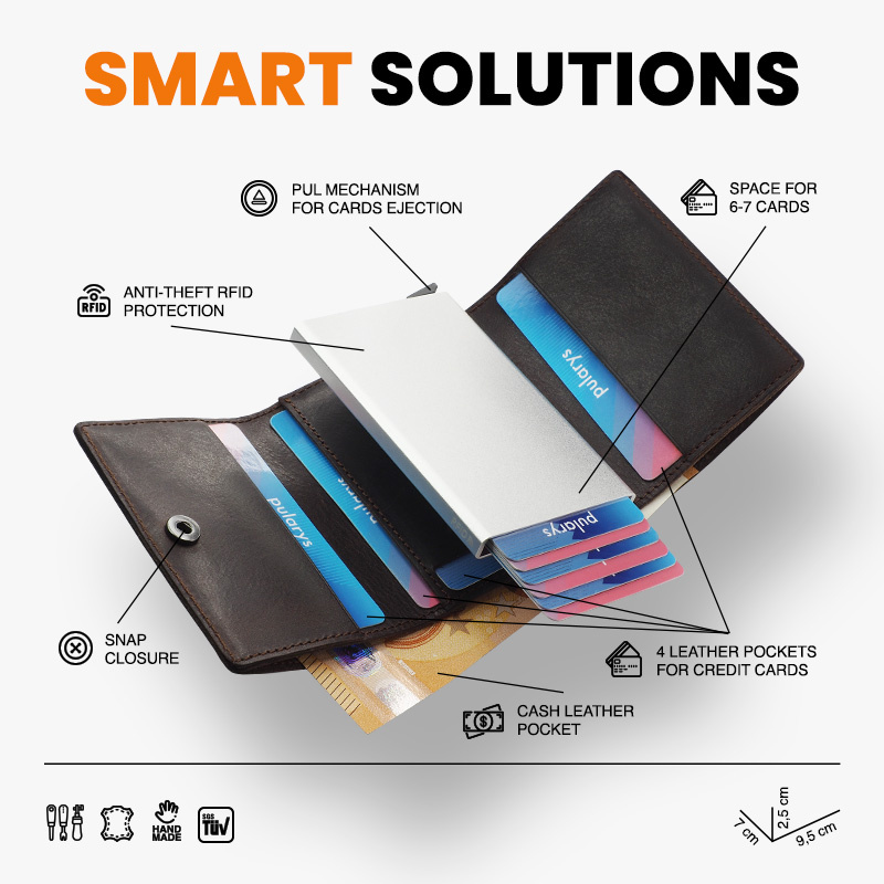 Przechowa wiele kart płatniczych i dokumentów.