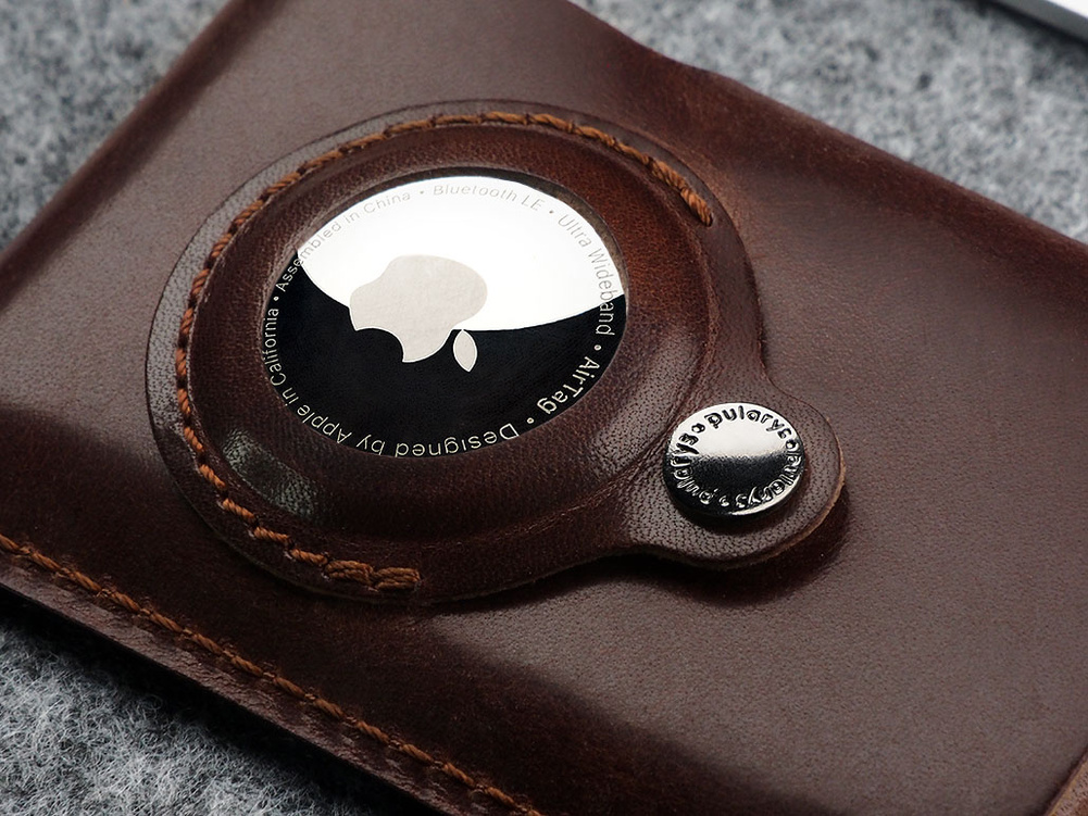 Specjalnie zaprojektowany uchwyt na airtag pozwala na wygodne przechowywanie dodatkowego zabezpieczenia Twojego portfela.
