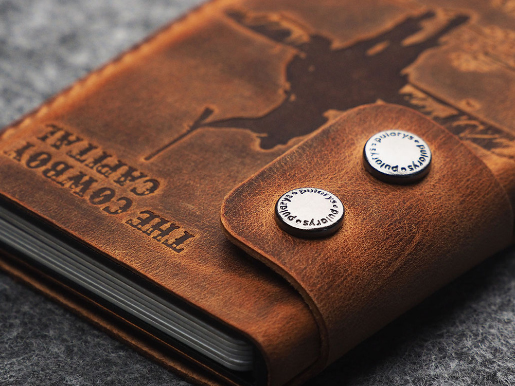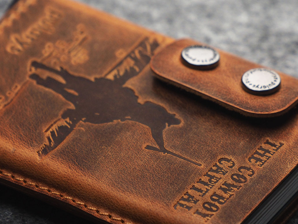 Zdobiony tłoczeniem zainspirowanym współczesnymi cowboyami o polskich nazwiskach - mieszkańcami Bandery w Teksasie.