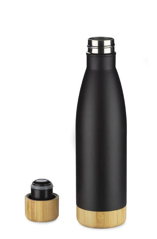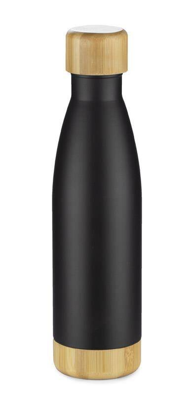 Połączenie matowej powierzchni butelki z elementami bambusowymi sprawia, że butelka wygląda elegancko.