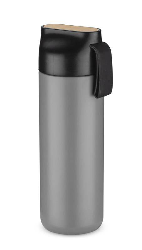 Butelka termiczna ELSA wykonana jest ze stali nierdzewnej o podwyższonym standardzie. Posiada próżnię między ściankami, dzięki czemu utrzymuje temperaturę napoju około 10 godzin. Zakrętka z tworzywa posiada ozdobny element z naturalnego bambusa i silikonowy uchwyt.
