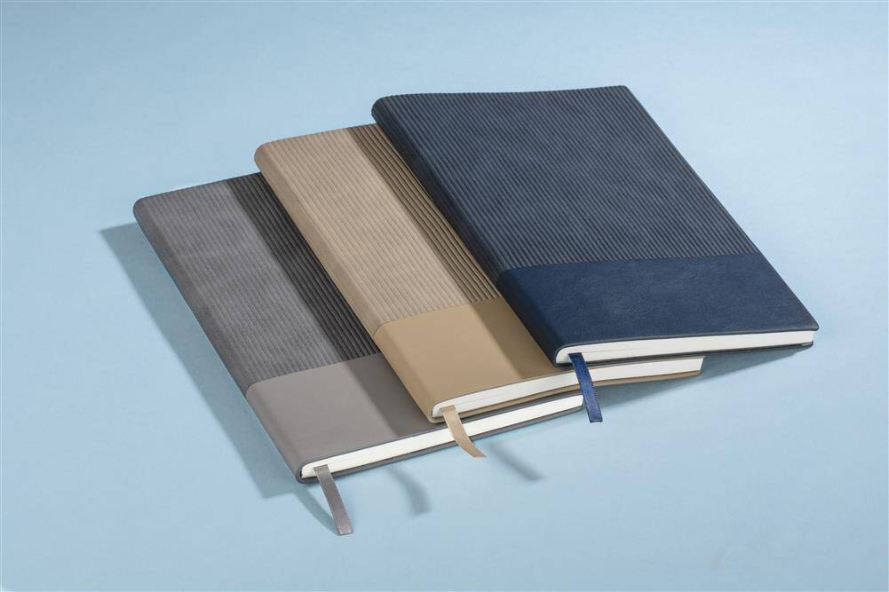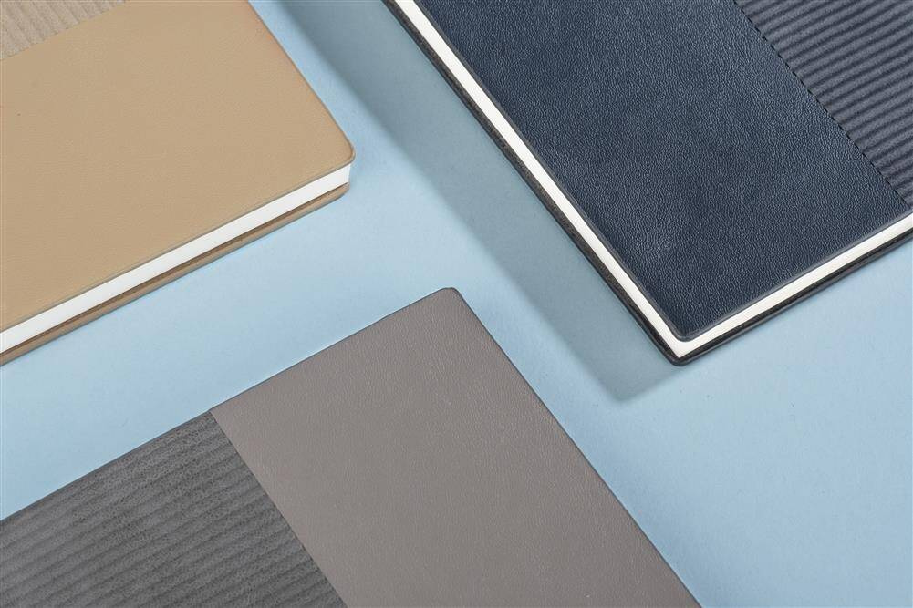 Notes w miękkiej, okładce z łączonych materiałów: ekoskóry i imitacji sztruksu, który jest niezwykle przyjemny w dotyku.