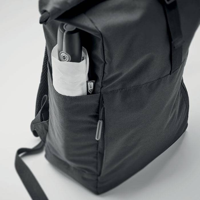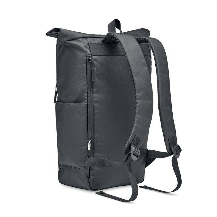 Plecak na laptopa 15 cali z zamknięciem typu rolltop, wykonany z poliestru 300D RPET.