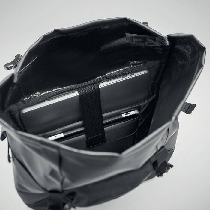 Plecak typu rolltop tkaniny tarpaulin 50C z wyściełanymi plecami, dnem i wzmocnieniem szelek.