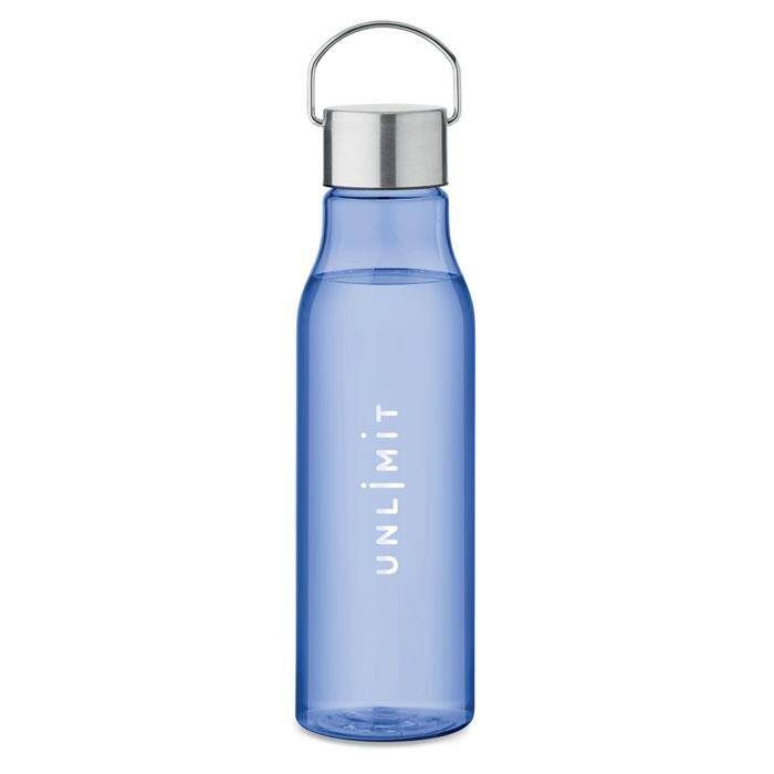Butelka do picia z RPET, wolna od BPA, z zakrętką ze stali nierdzewnej z uchwytem. Szczelna. Pojemność: 600 ml.